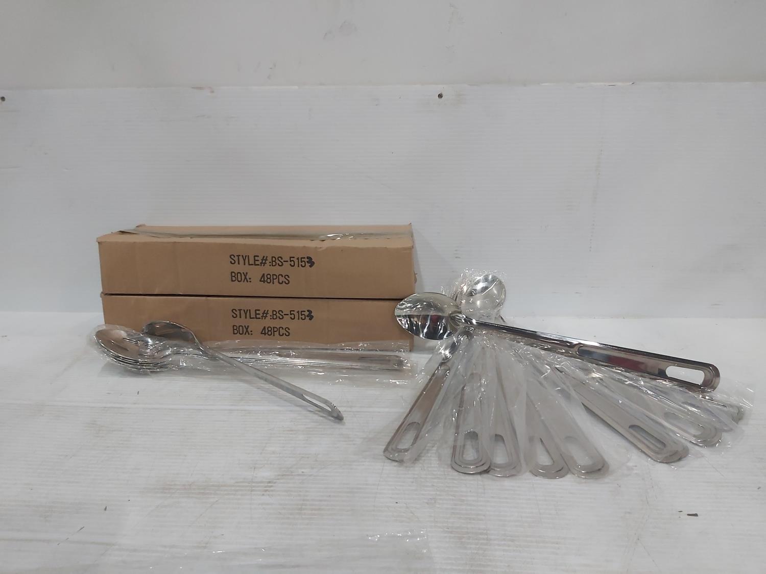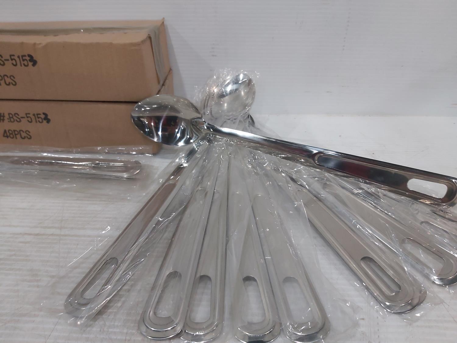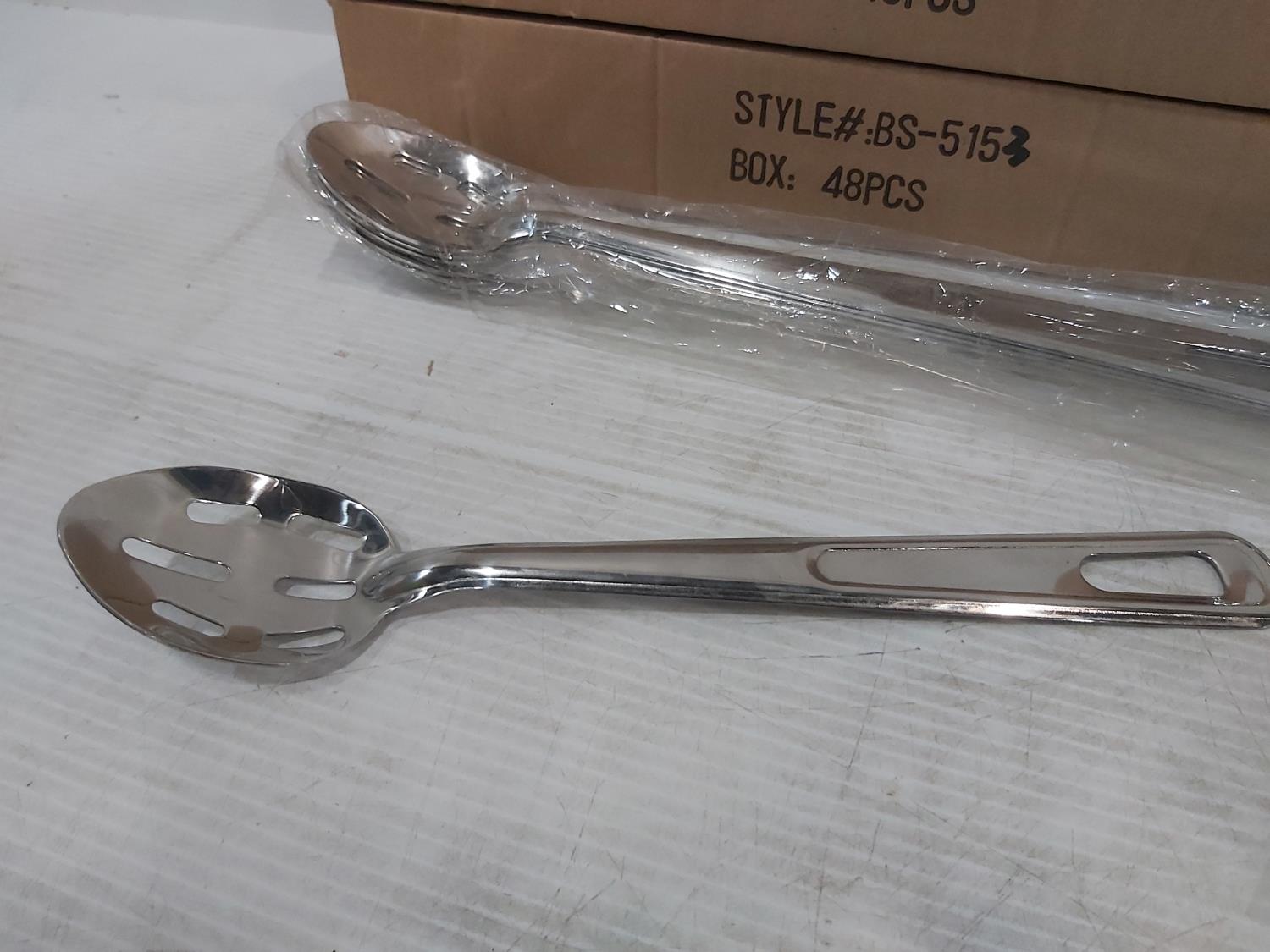 (102) 13 inch slotted serving spoons, (12) 15 inch serving spoons