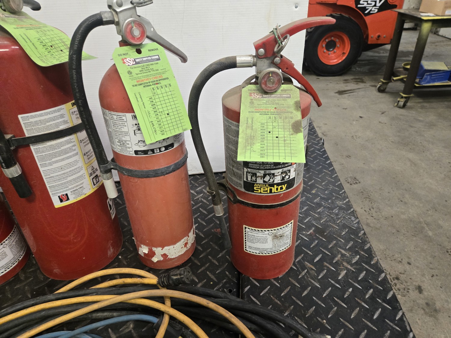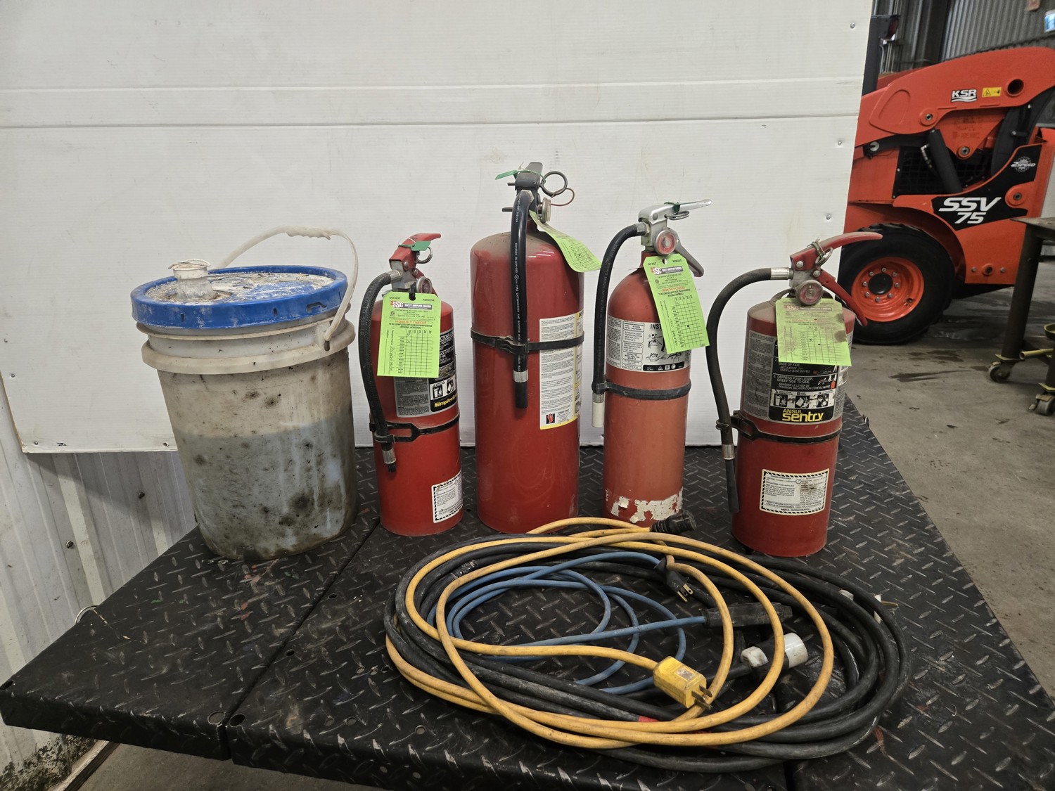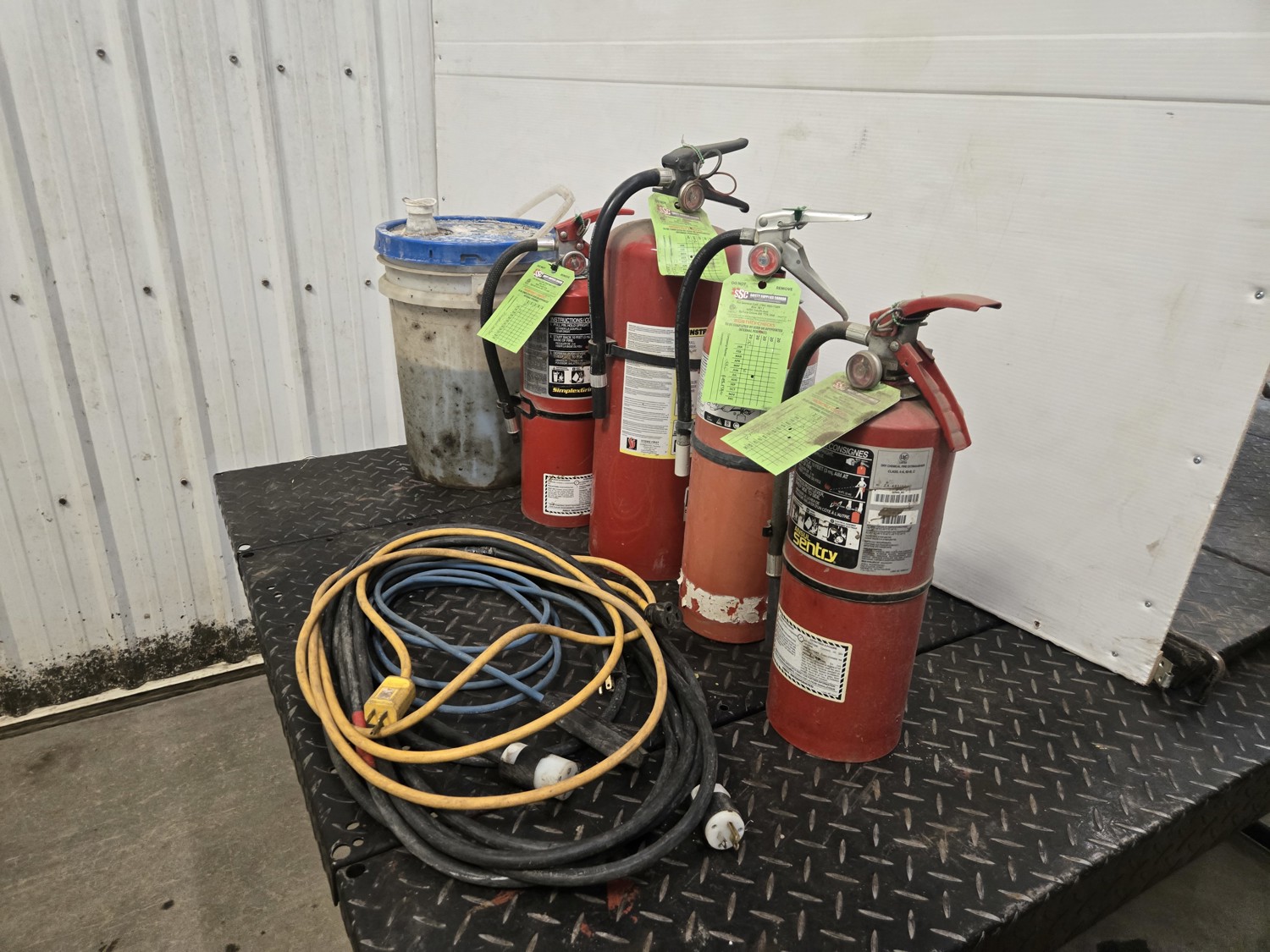 95 (1) 1/2 Pail of Rig Wash, (4) Fire Extinguishers & Qty of Extension Cords
