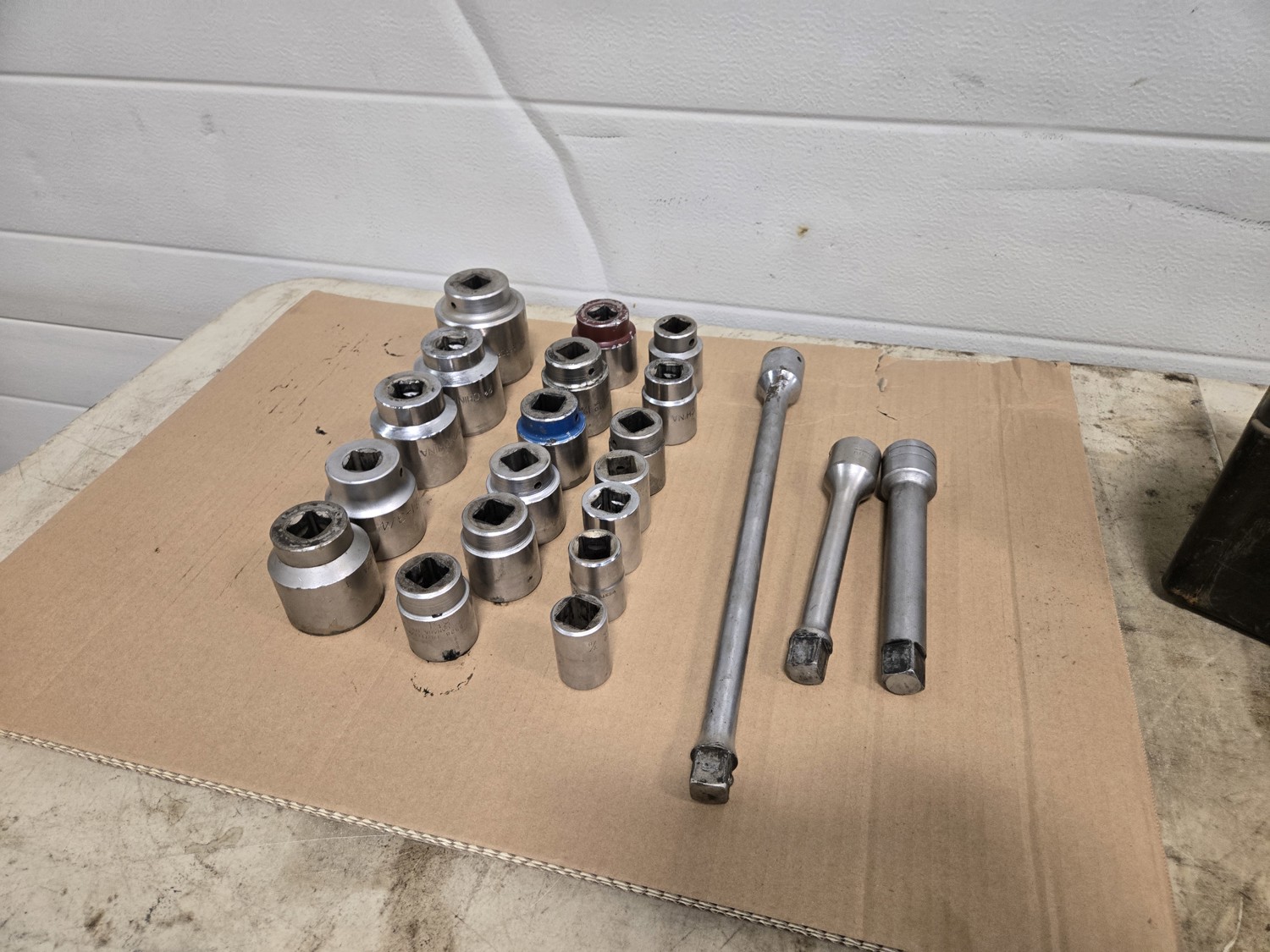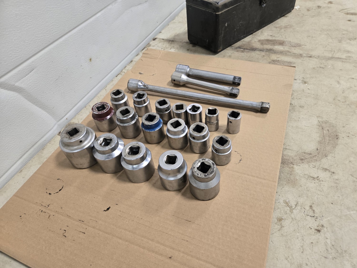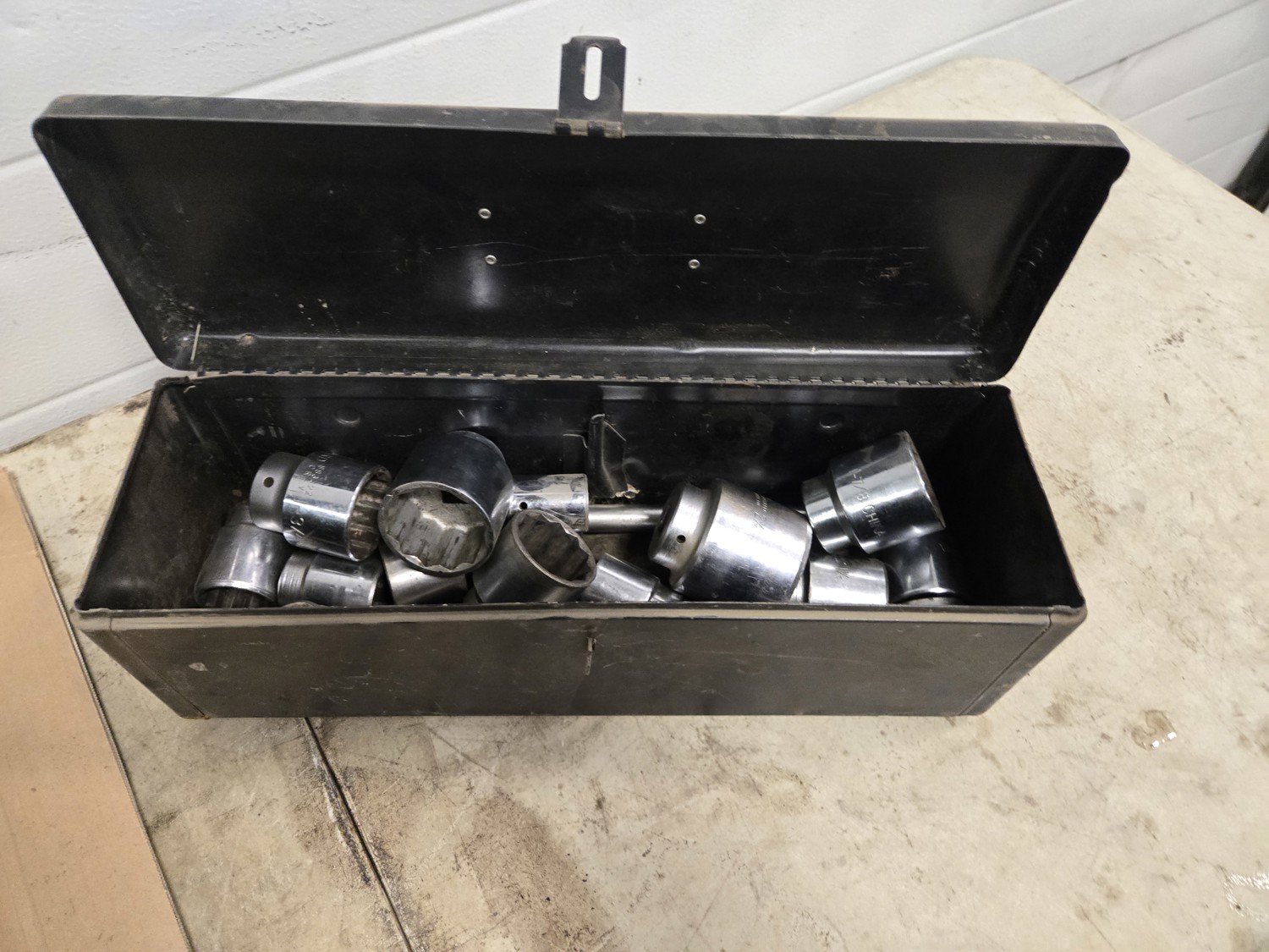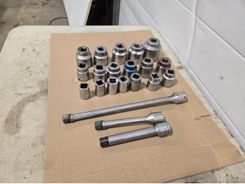 499 (18) 3/4 Inch Drive Sockets From 7/8 to 2-3/16 Inch, (3) Extensions & Tool Box