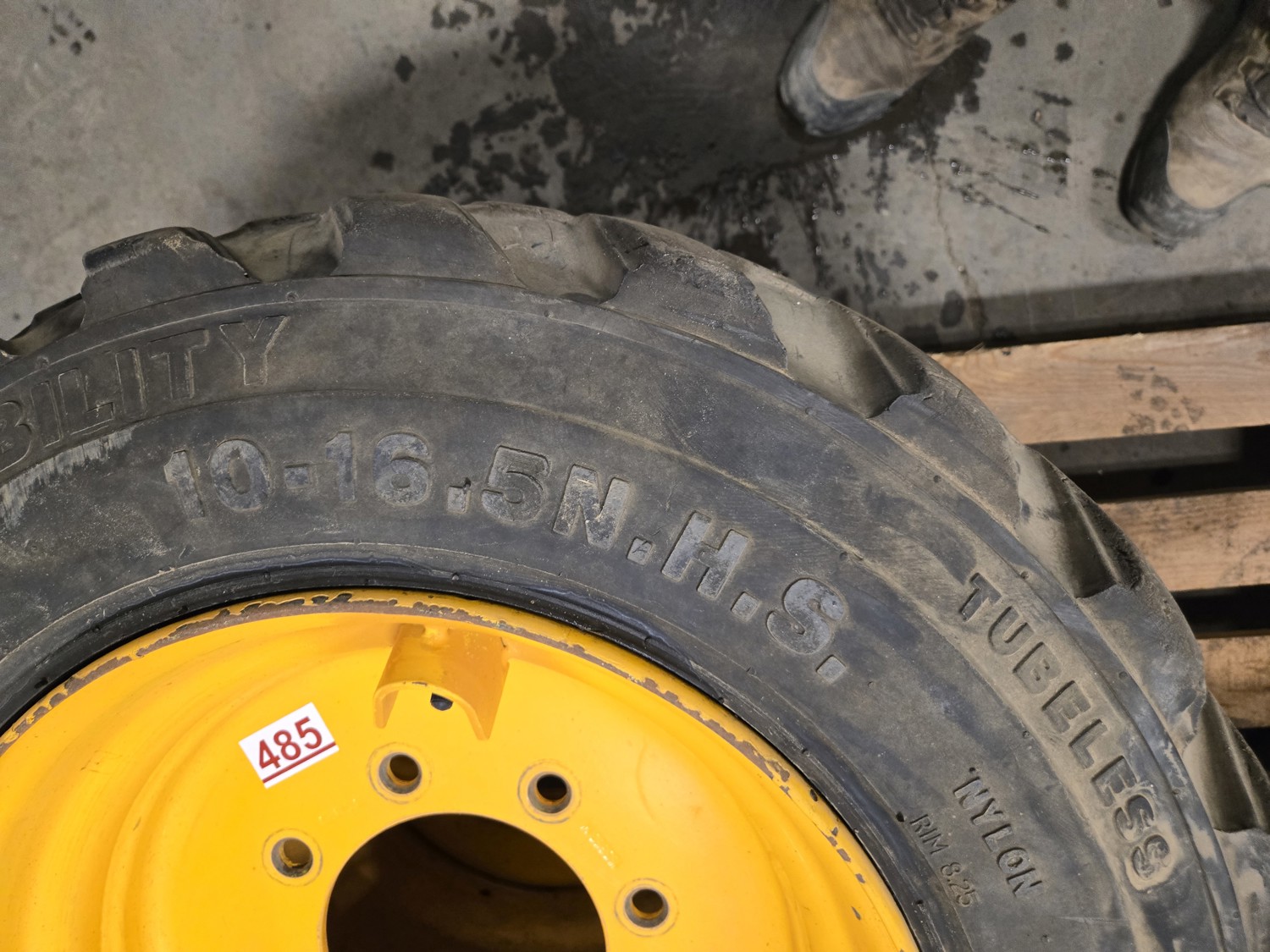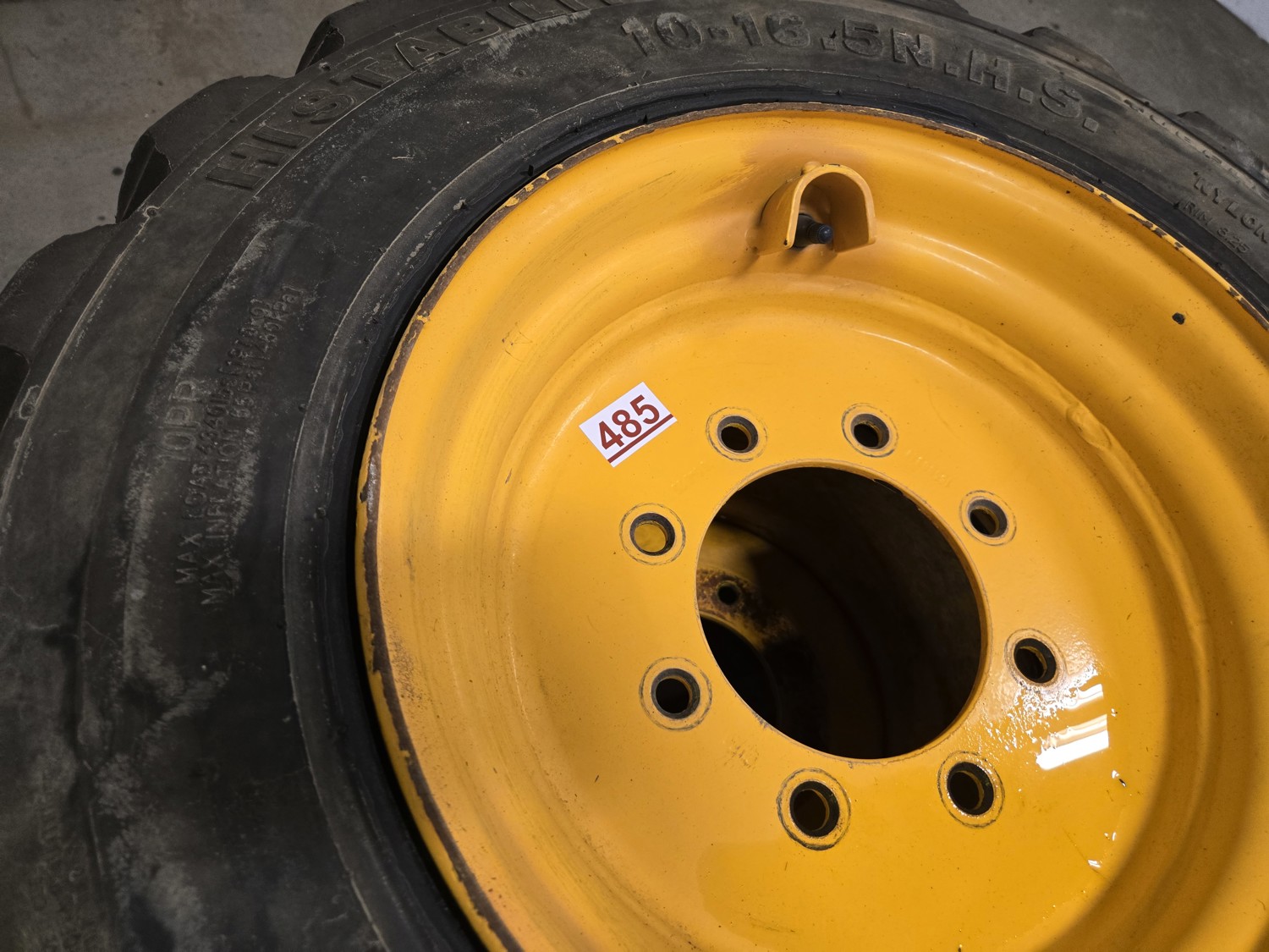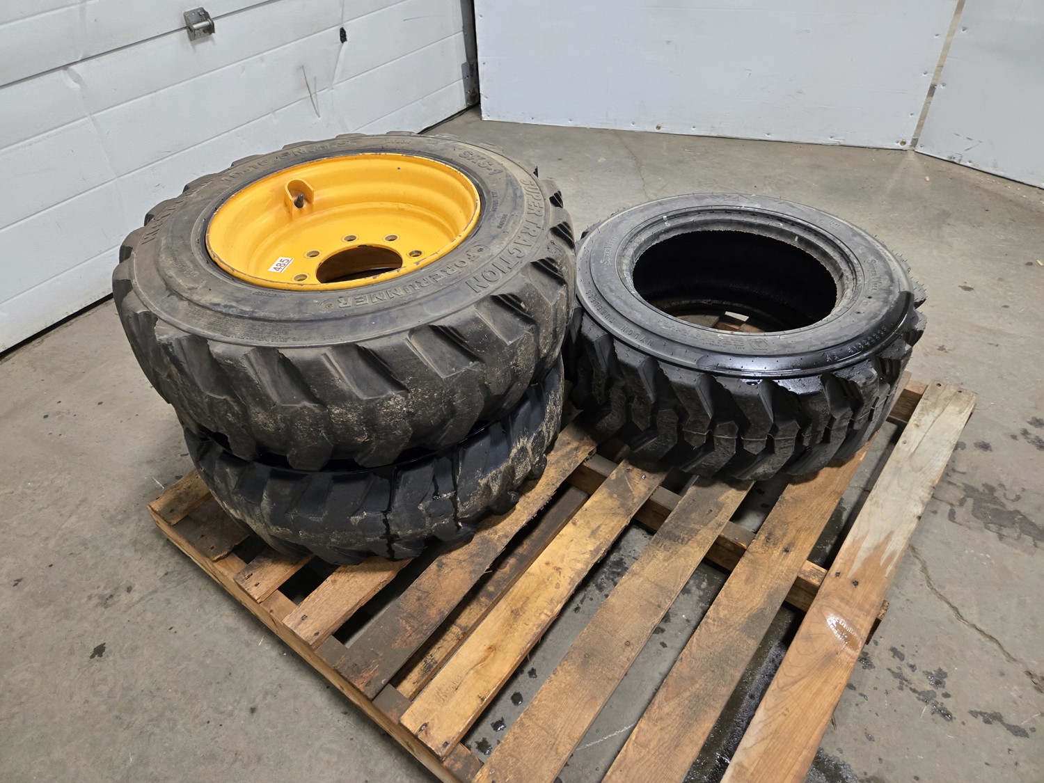 698 (2) 10-16.5 On Skid Steer Tires on JCB Rims (1) Unused 10-16.5 Tire