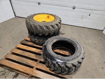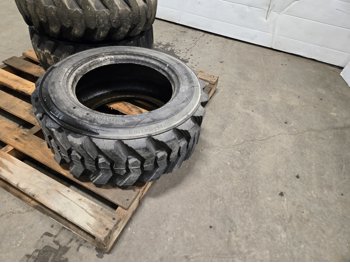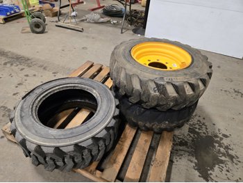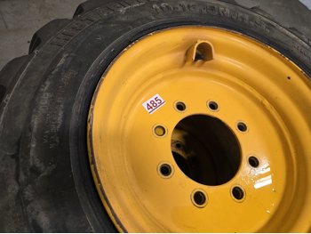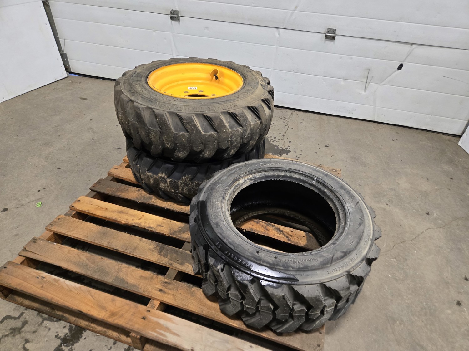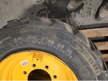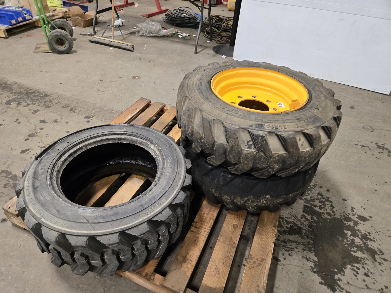 698 (2) 10-16.5 On Skid Steer Tires on JCB Rims (1) Unused 10-16.5 Tire