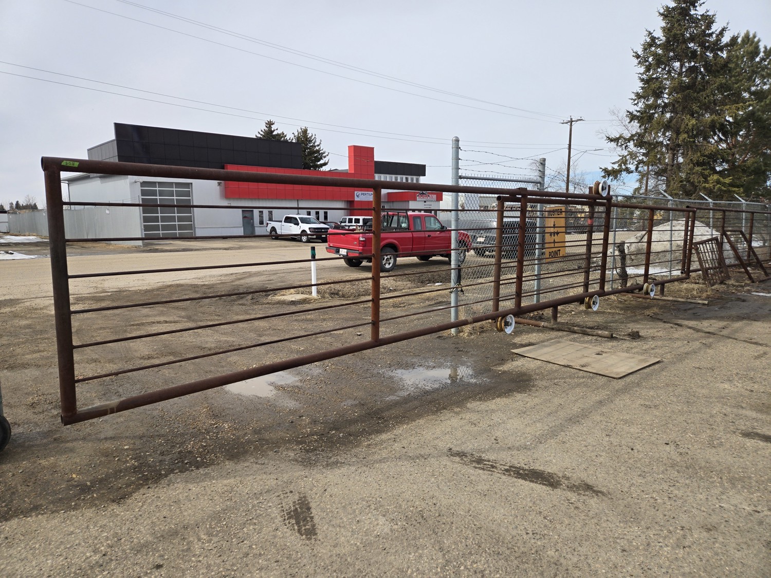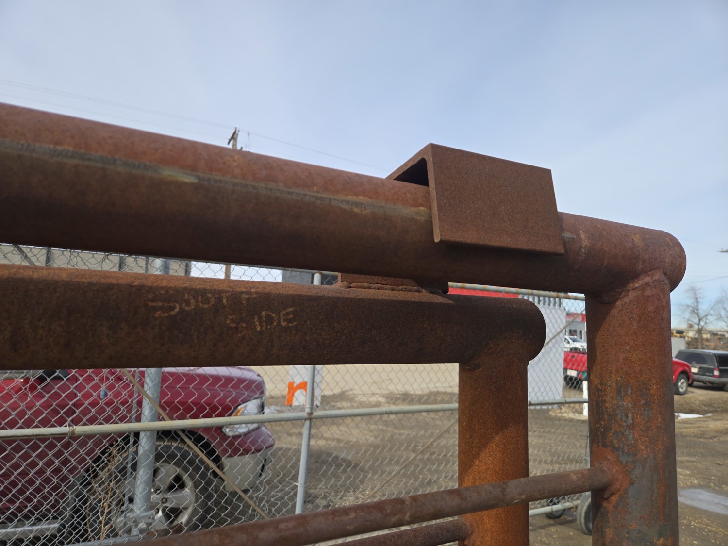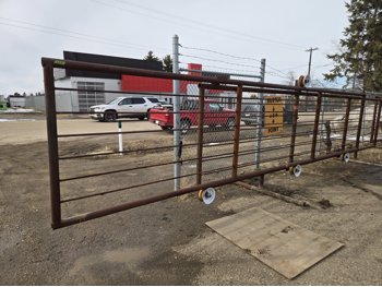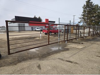 panel rolls out 12 ft, when used as a set you have a 24 ft gate opening, 71 inch high, (6) 3/4 inch sucker rod rails, 2-7/8 inch pipe frame. Note: pickup dates are Apr 23 & 24