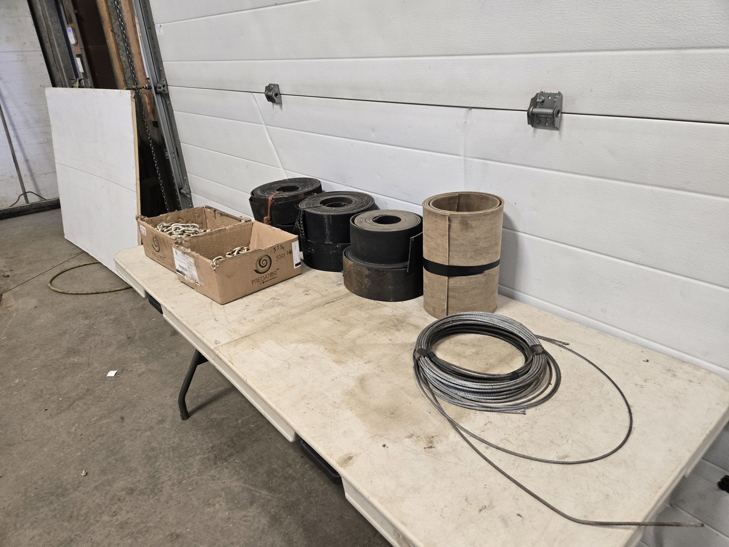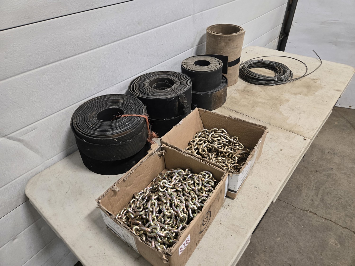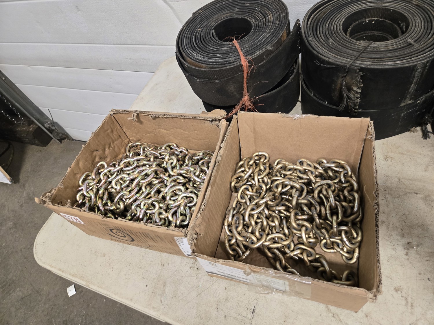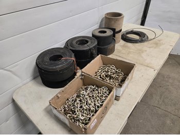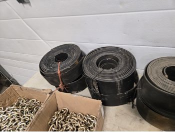 97 (2) Boxes of 5/16 Inch Grade 70 Chain (Unused) & Qty of Rubber Belting
