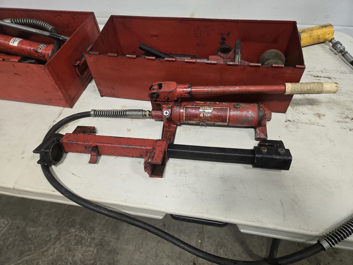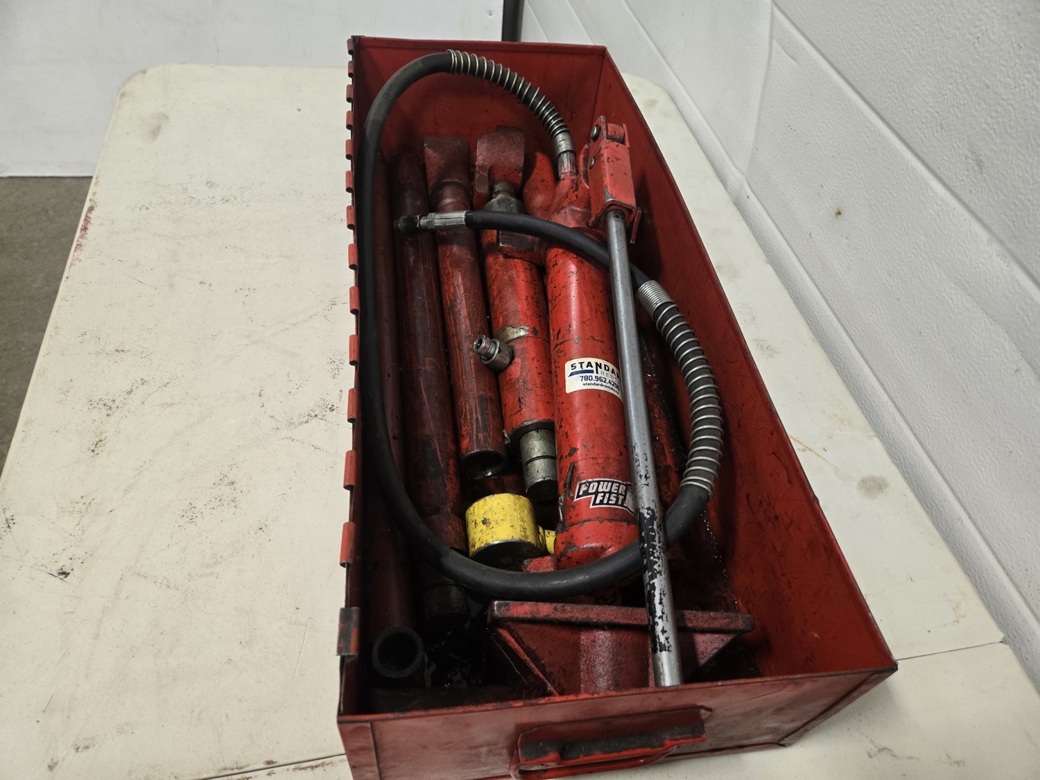 (2) Porta-powers with accessories, small hose leak on larger unit