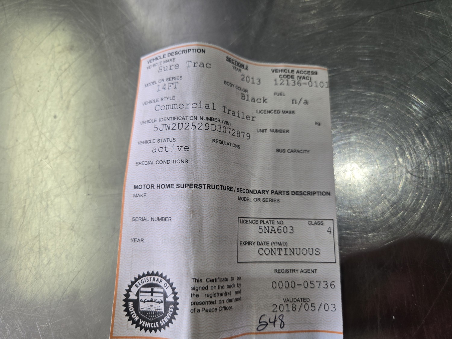 Copy of registration on hand. - Contact: