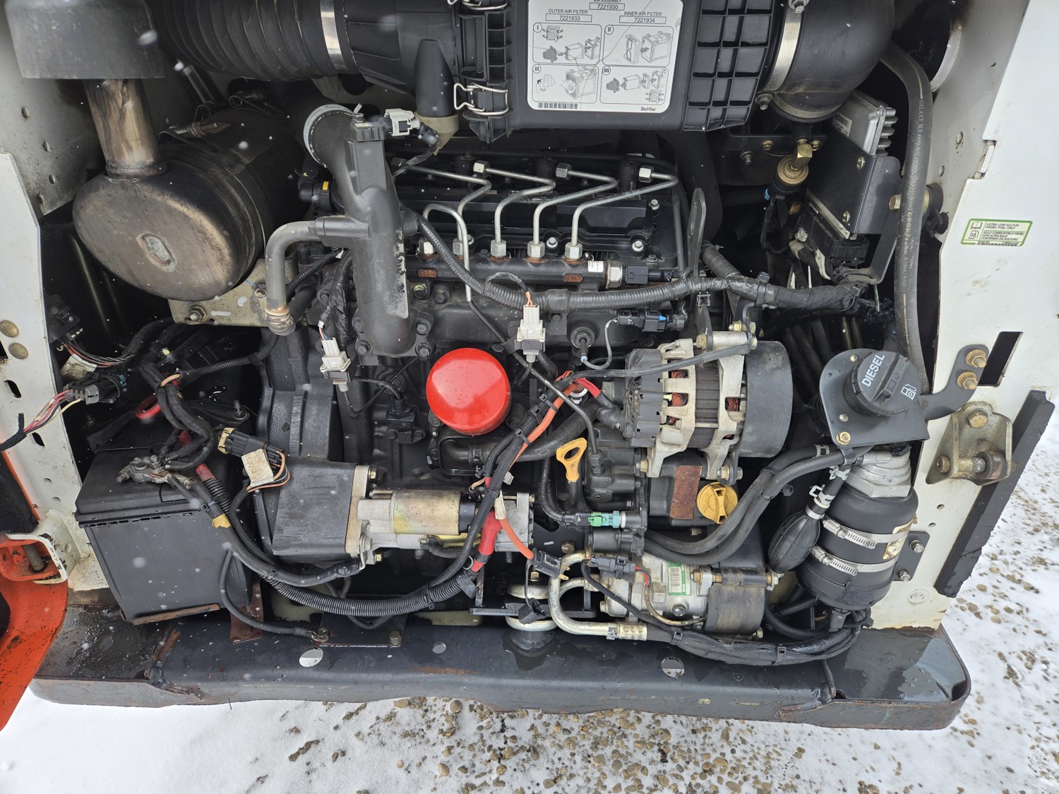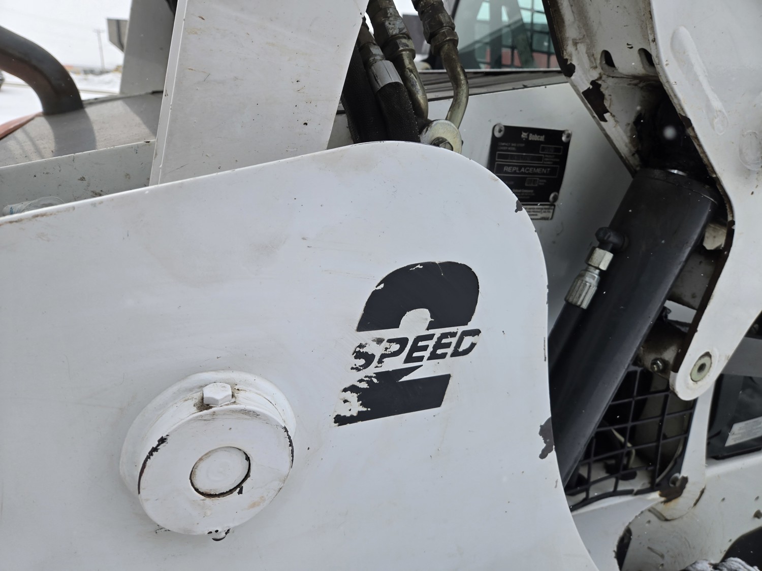 72 inch HLA tooth bucket, hydraulic Q/A, ISO or H pattern control, foot throttle, 2 speed, aux hydraulics, Enclosed cab, AC, LED side lighting, 10-16.5 tires, original serial number plate was lost factory replacement from bobcat installed, still running good