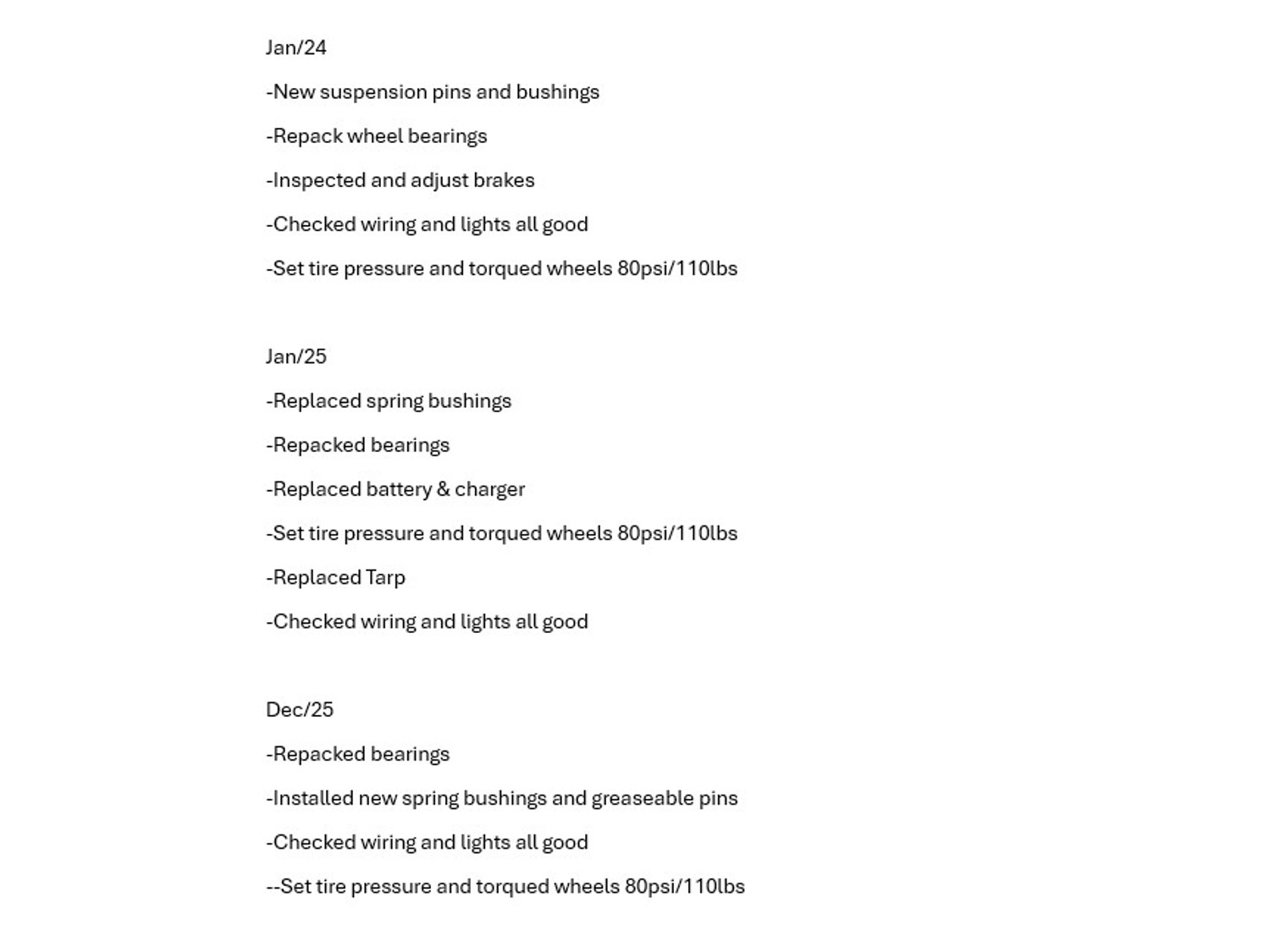 Ball hitch, 5 ft box width, 18 inch side wall height, roll tarp, ramps, hydraulic power pack, corded lift remote, electric brakes, spring suspension, 5,000 lb axles, spare, power up, down & gravity down, 225/75R15 tires