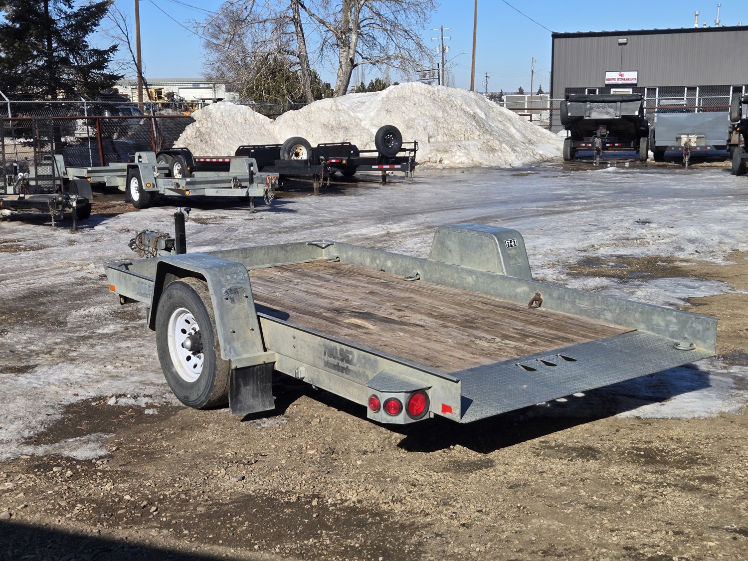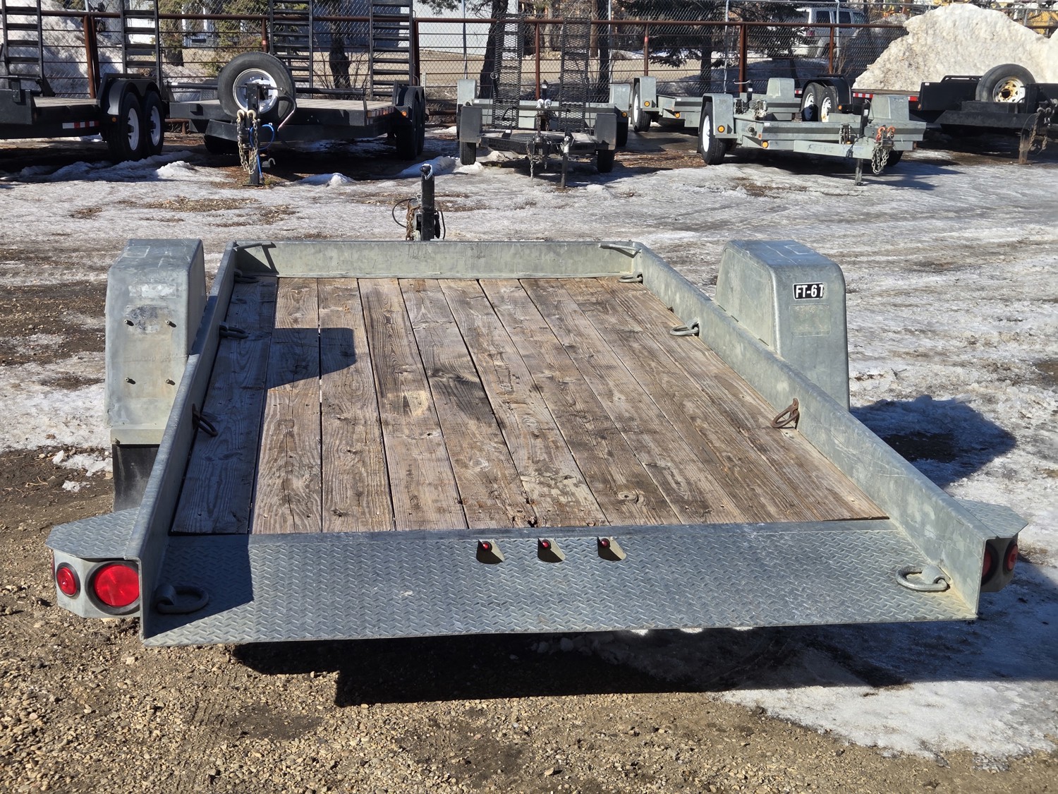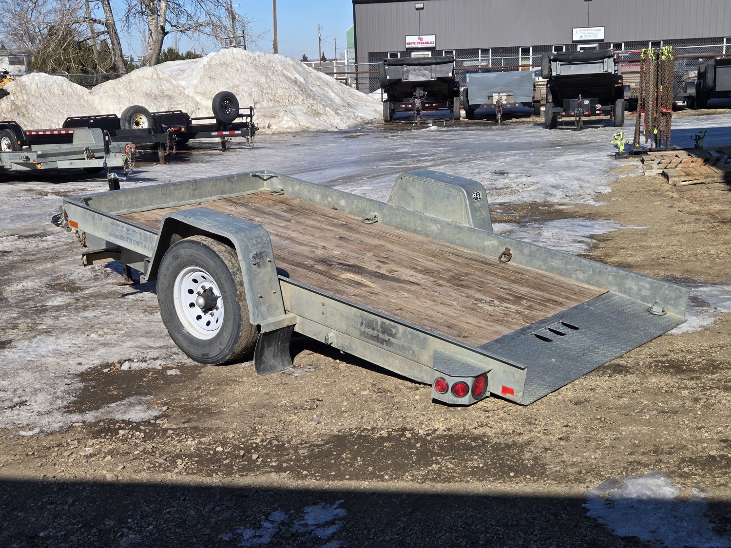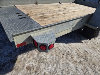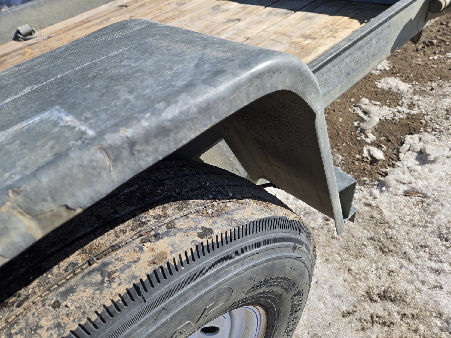 74 inch wide deck, 12 ft tilt deck, wood deck, hydraulic brakes, spring suspension, ball hitch, D ring tie downs, galvanized, excellent trailer in very good condition, 7000 lb axles, 235/80R16 tires