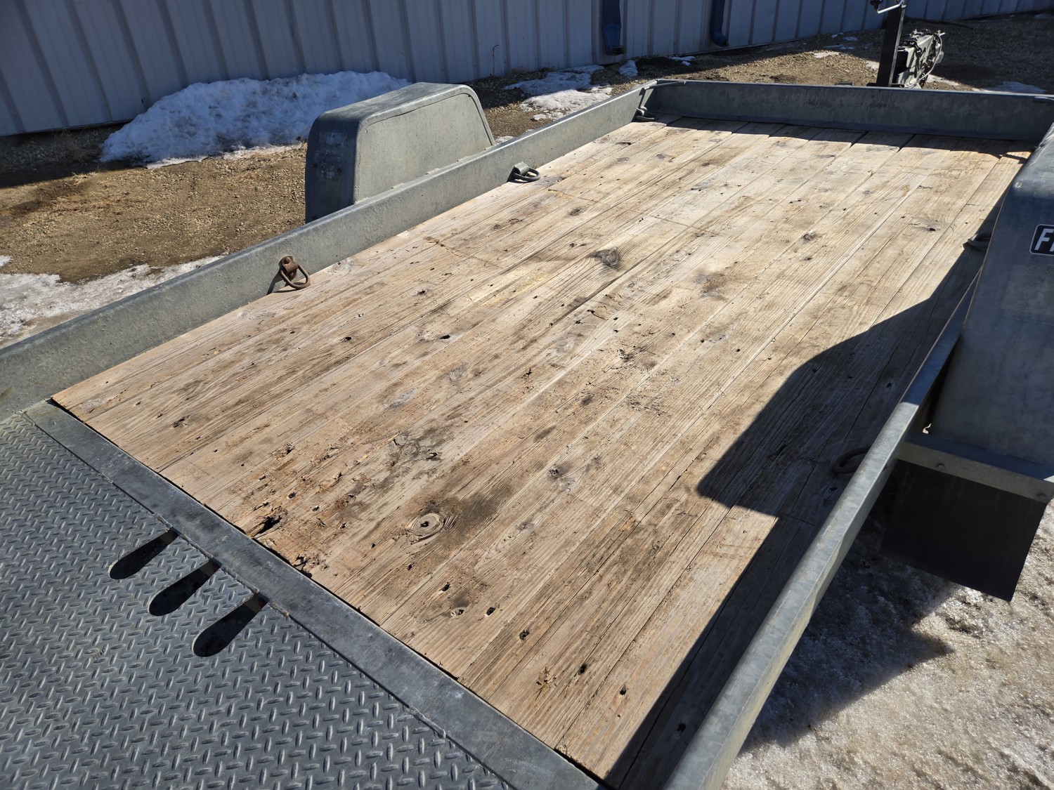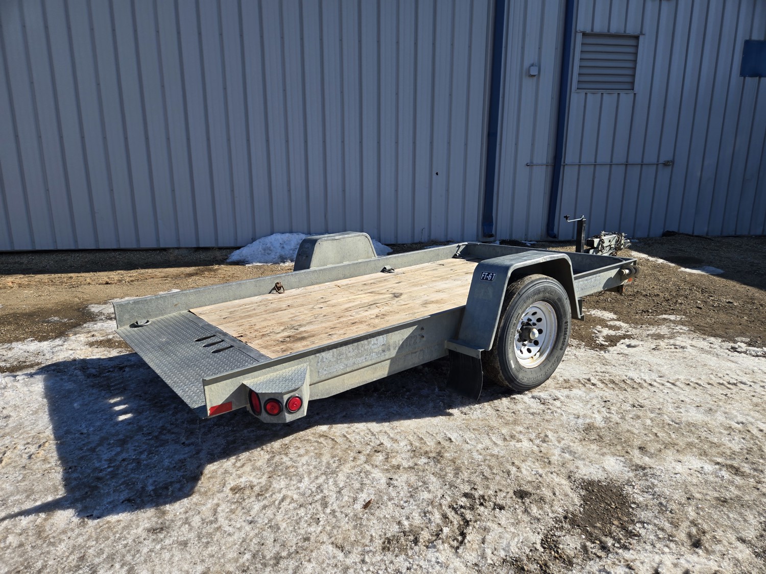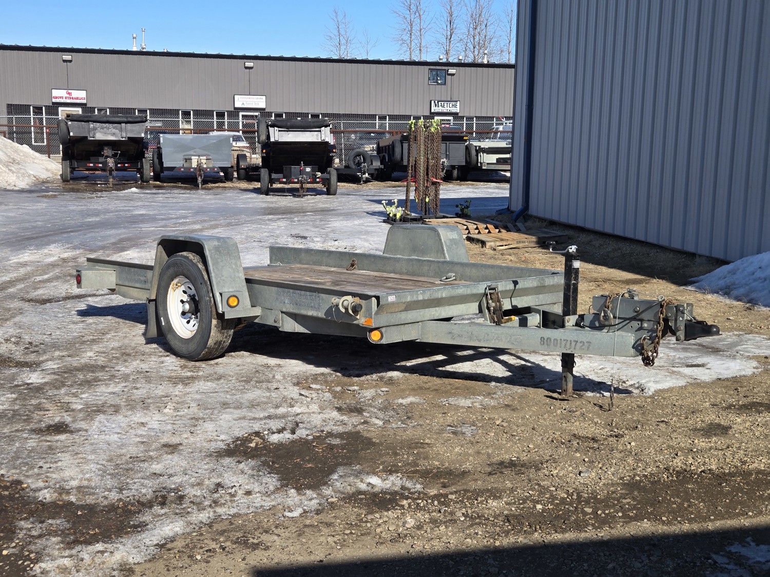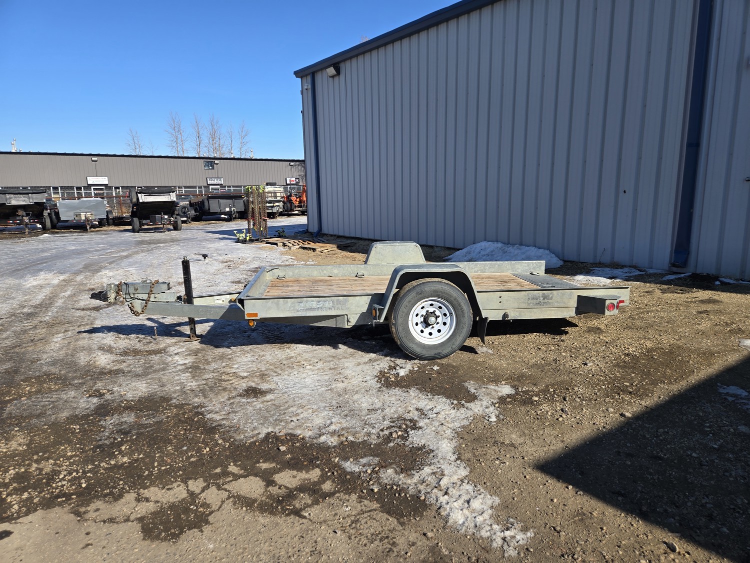 74 inch wide deck, 12 ft tilt deck, wood deck, hydraulic brakes, spring suspension, ball hitch, D ring tie downs, galvanized, excellent trailer in very good condition, 7000 lb axles, 235/80R16 tires