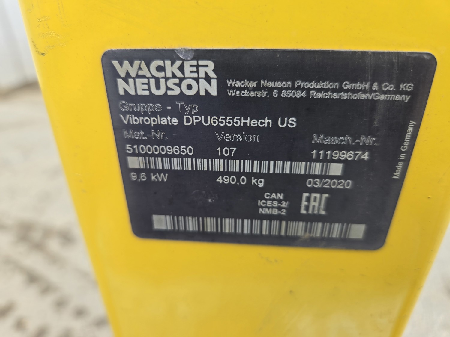 228 2020 Wacker Neuson DPU6555 1000 lb Plate Tamper