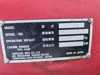 2021 Takeuchi TB216 2 Ton Mini Excavator