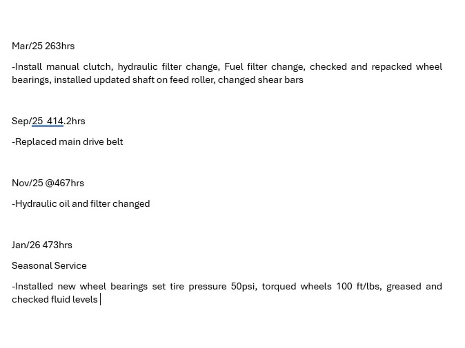 Kohler twin cylinder 25HP electric start gas engine, feed roll governor, updated drive engagement (removed electric clutch and installed factory manual drive engagement), 175/80R13 tires, completely serviced and ready for work
