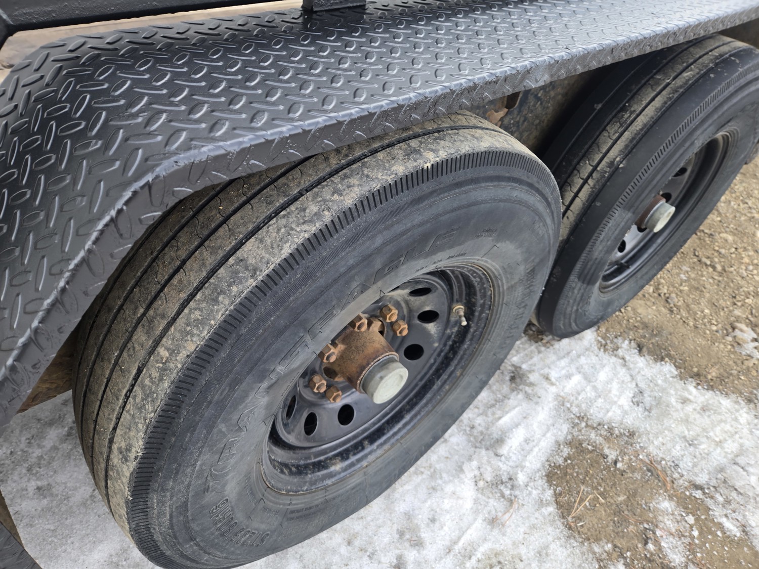 83 inch wide deck, 17 ft tilt deck, wood deck, electric brakes, torsion suspension, 2-5/16 inch ball hitch, rub rails, stake pockets, D ring tie downs, very good condition, spare, 7000 lb axles, 235/80R16 tires