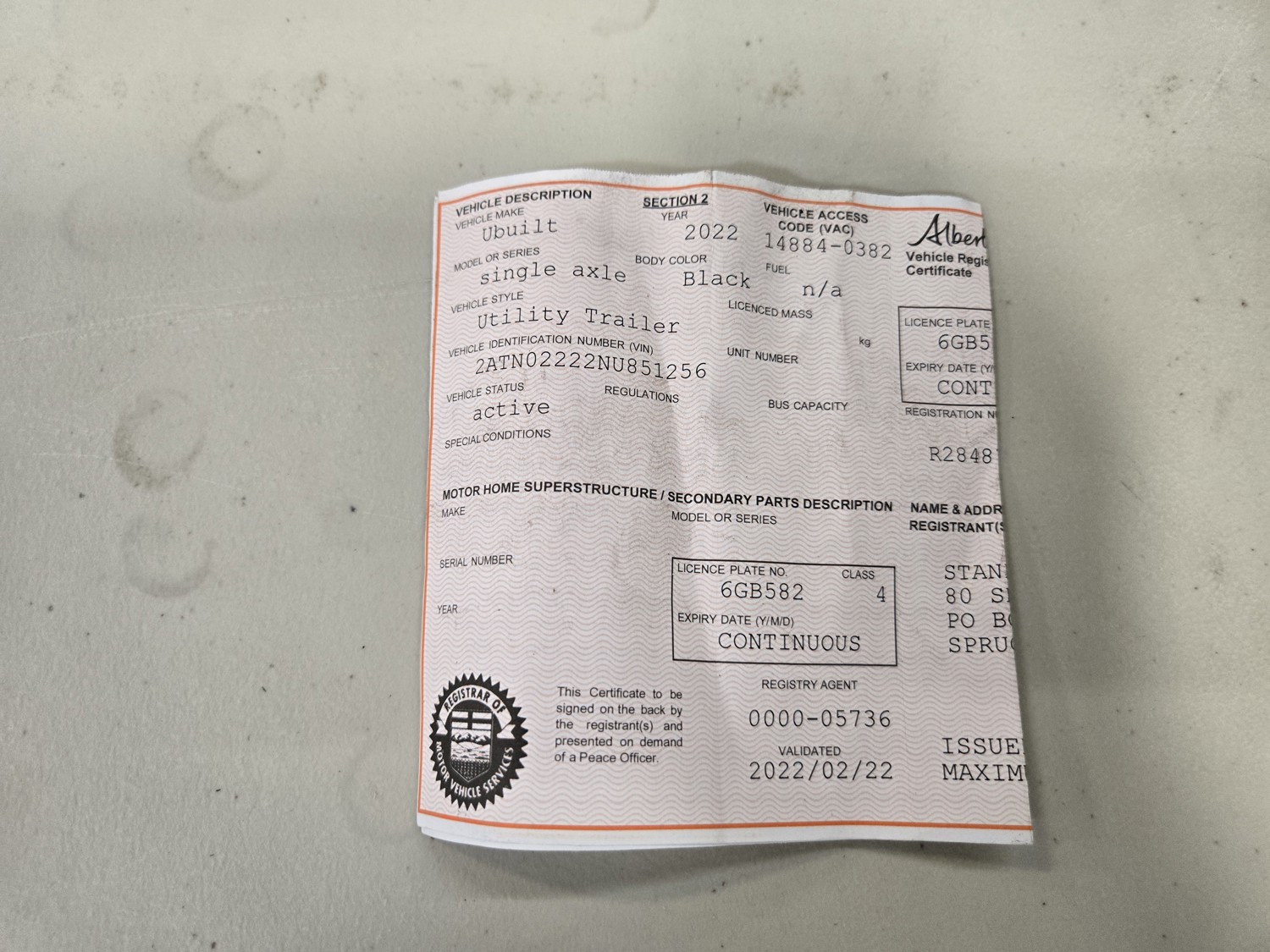 Copy of registration on hand.