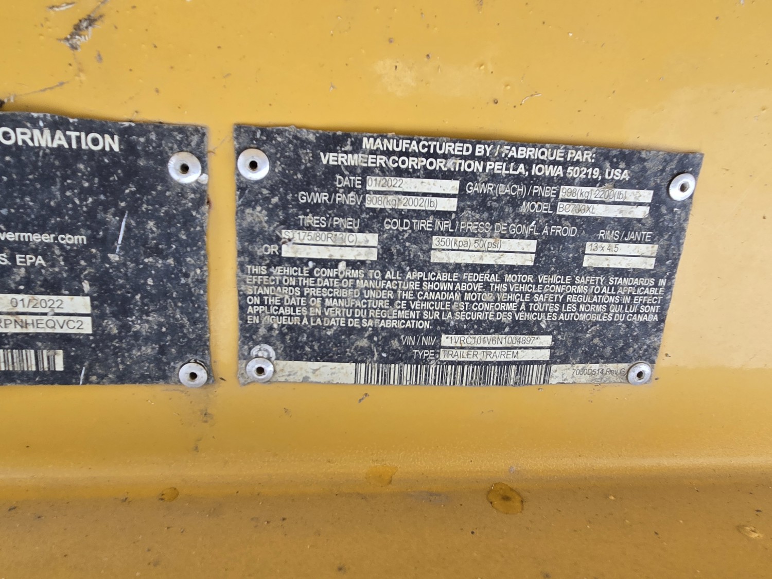 2022 Vermeer BC700XL Towable S/A 6 Inch Chipper