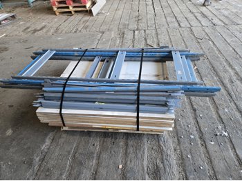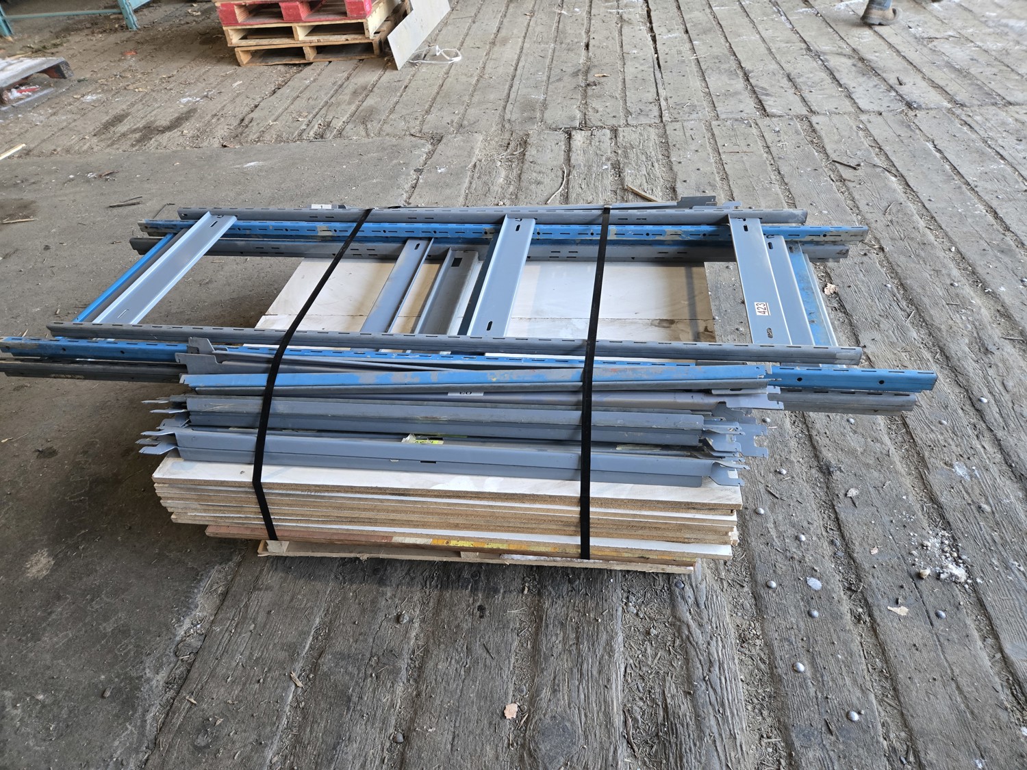 (20) wood shelfs, (10) posts from 72-84 inch,
