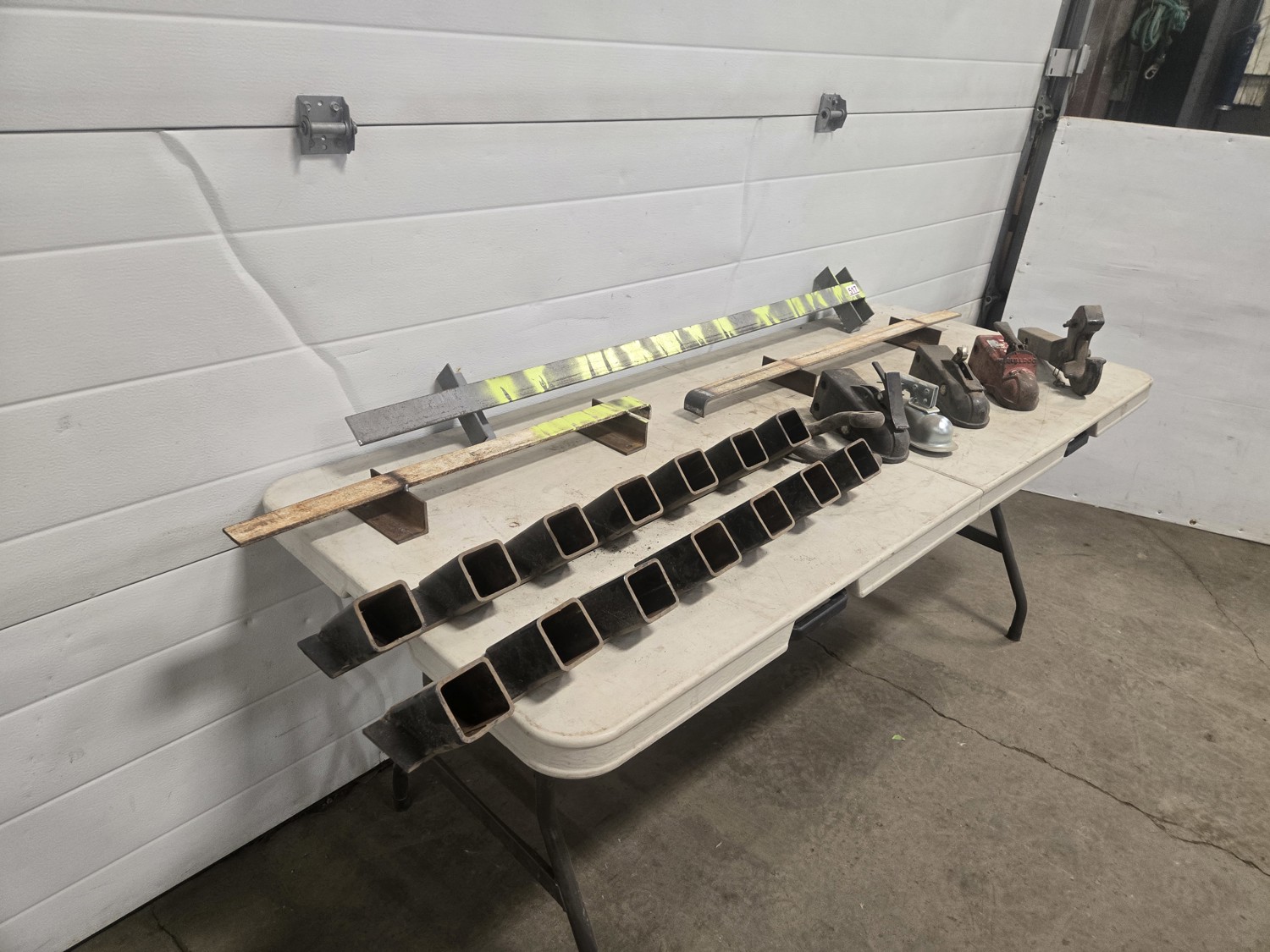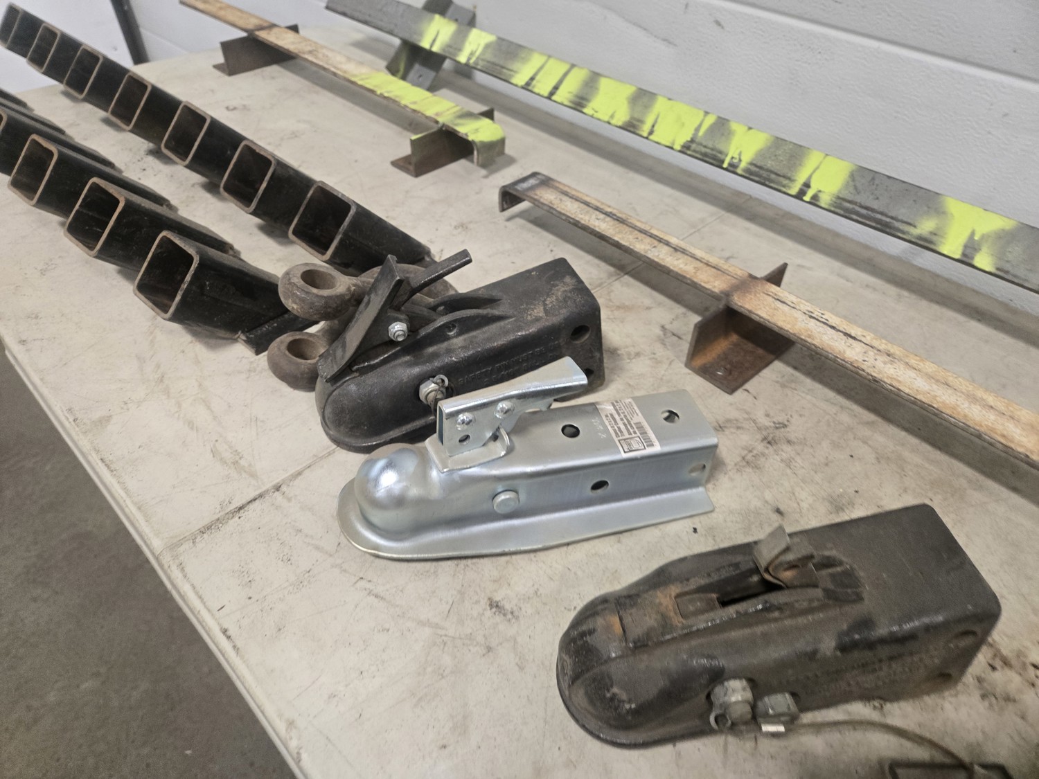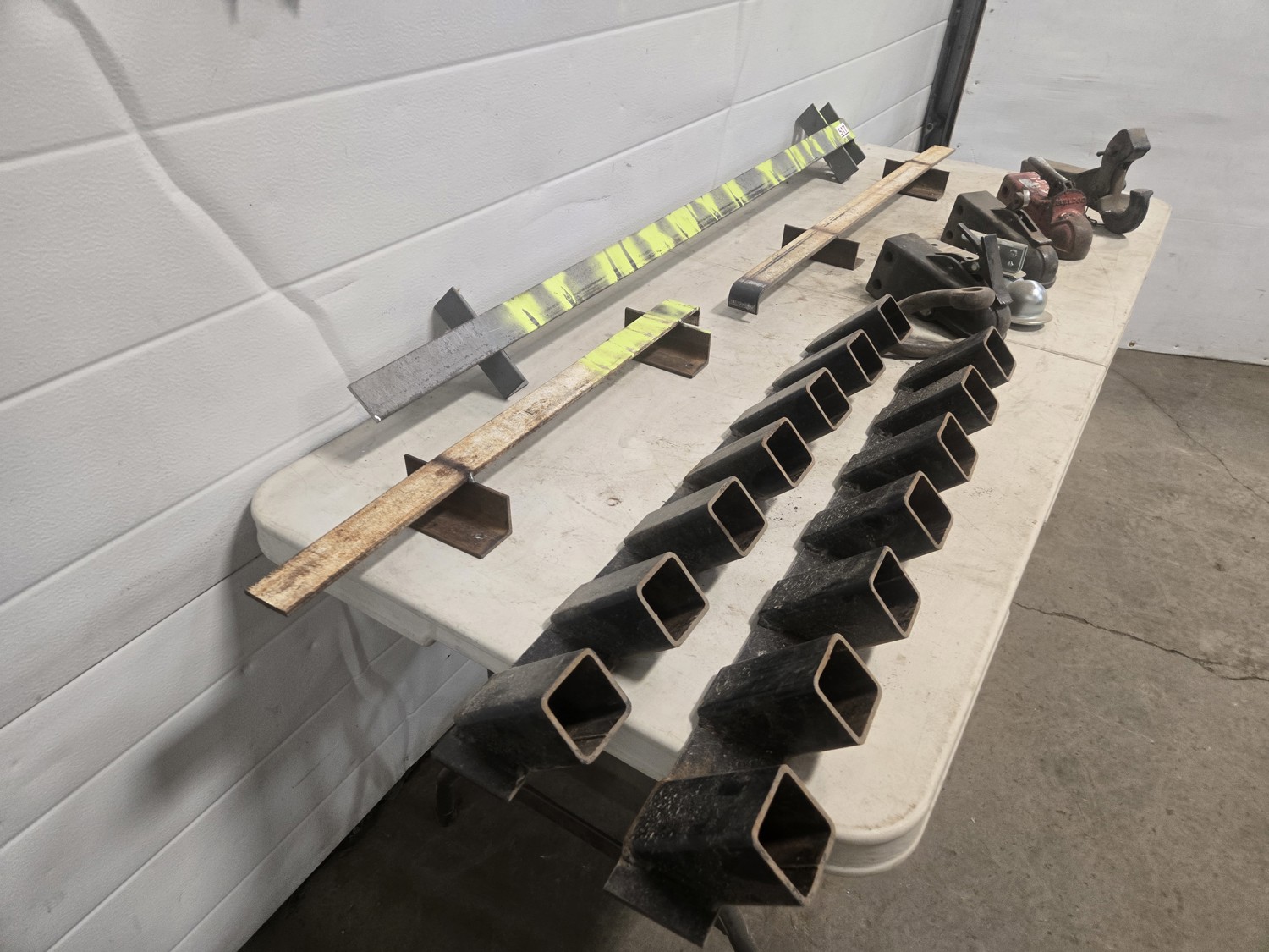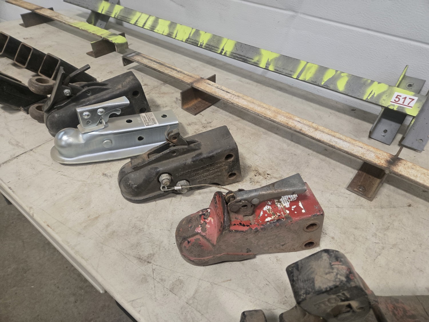578 (3) Wall Chain Racks, (2) Wall Receiver Hitch Racks & (4) Ball Hitches