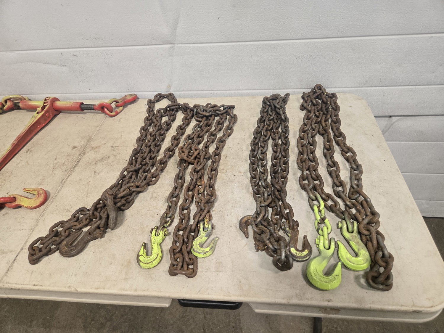594 (4) 3/8 Inch Load Binders & (4) Grade 70 Chains