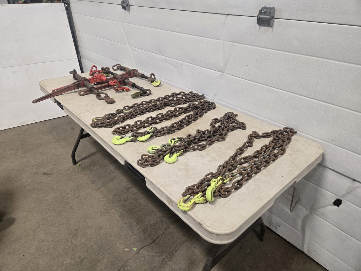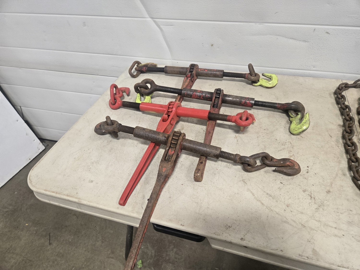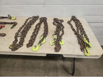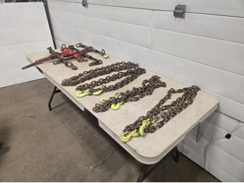 595 (4) 3/8 Inch Load Binders & (4) Grade 70 Chains