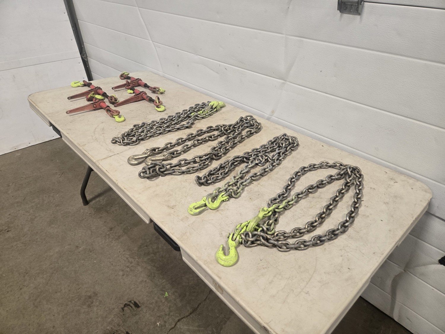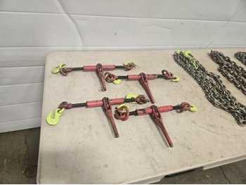 582 (4) 5/16 Inch Load Binders & (4) Grade 70 Chains