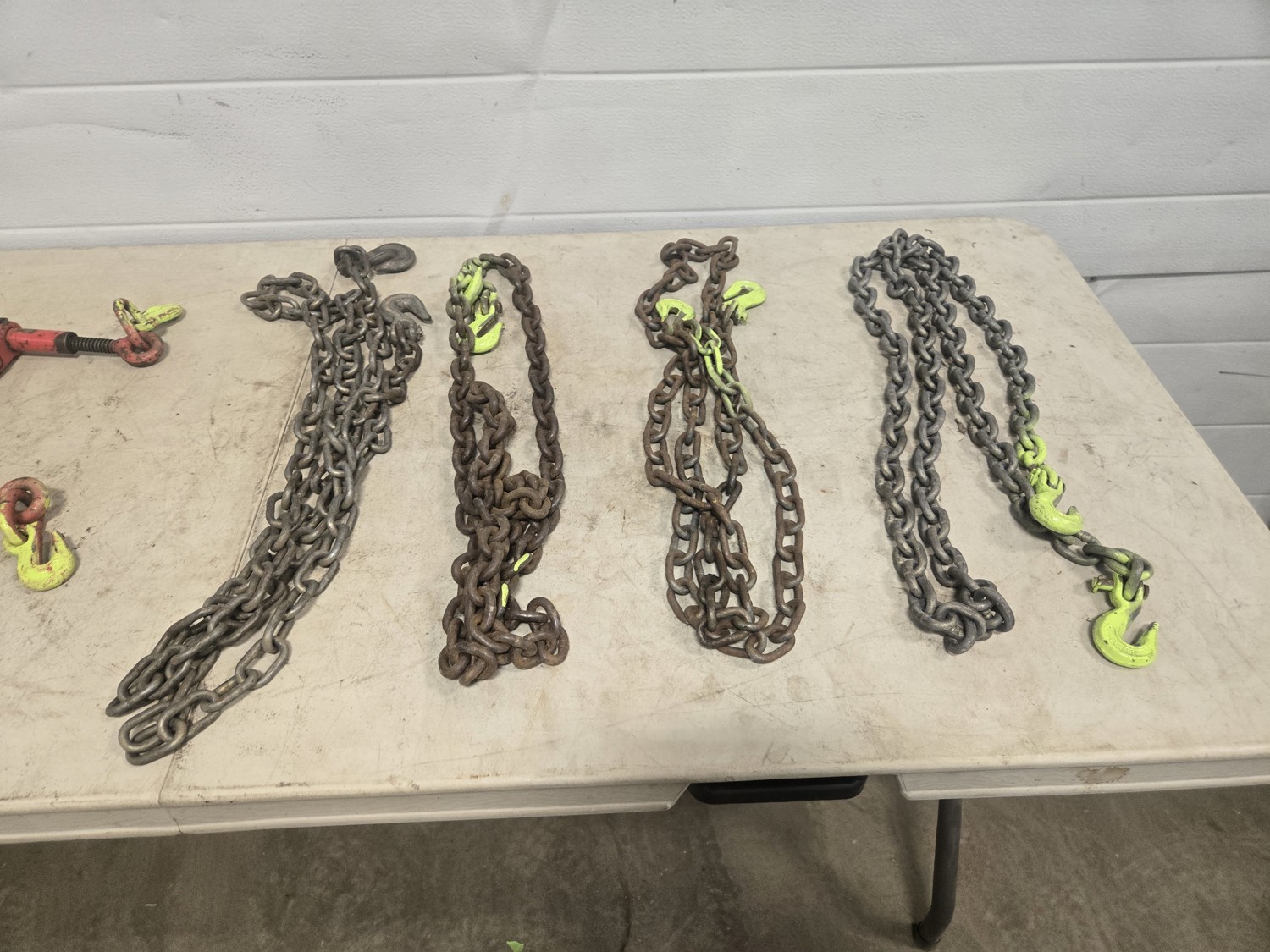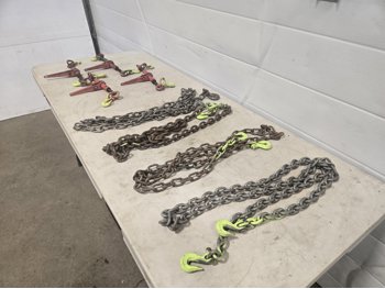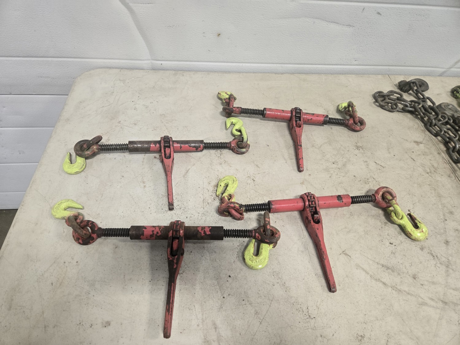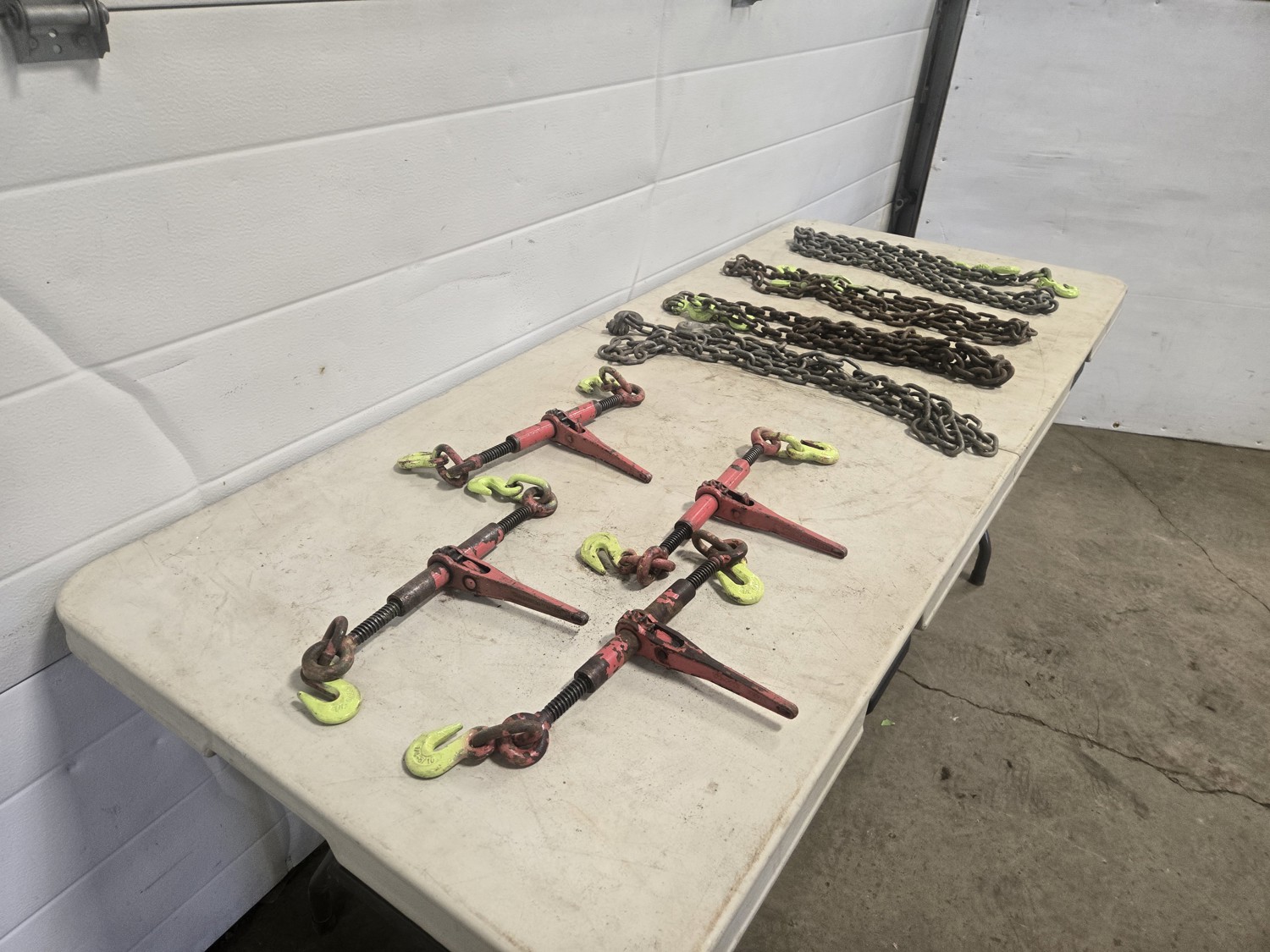 583 (4) 5/16 Inch Load Binders & (4) Grade 70 Chains