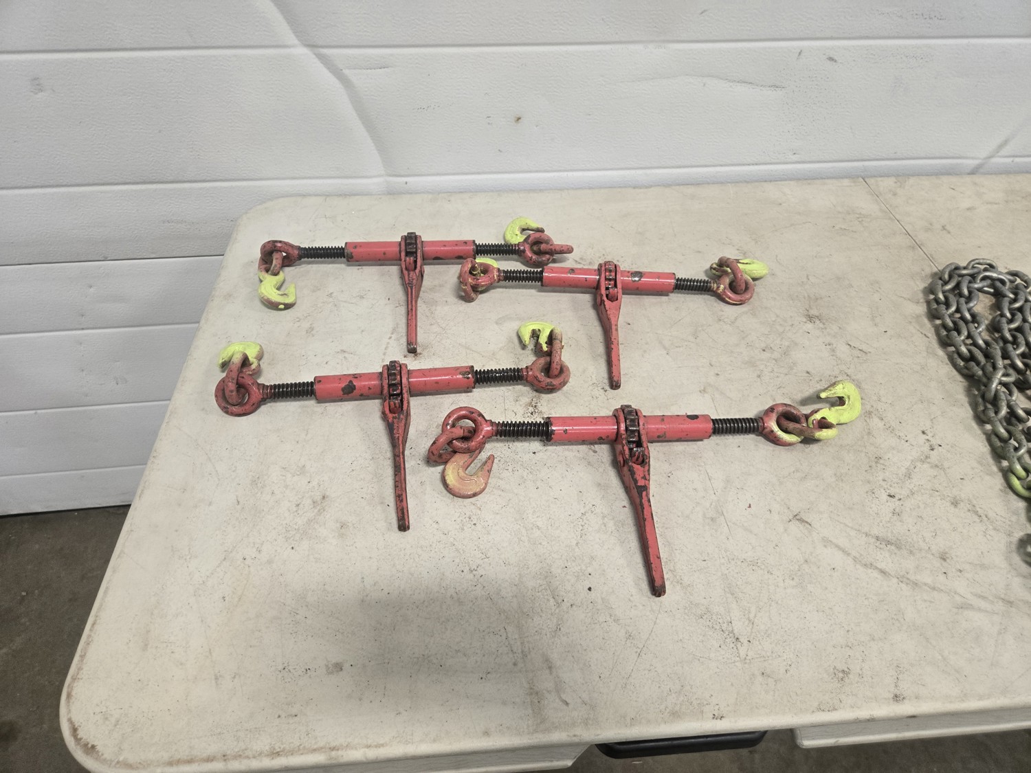 586 (4) 5/16 Inch Load Binders & (4) Grade 70 Chains