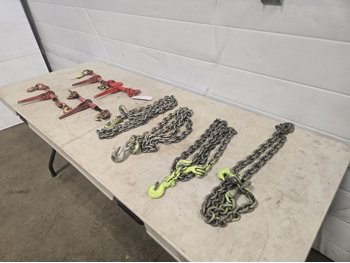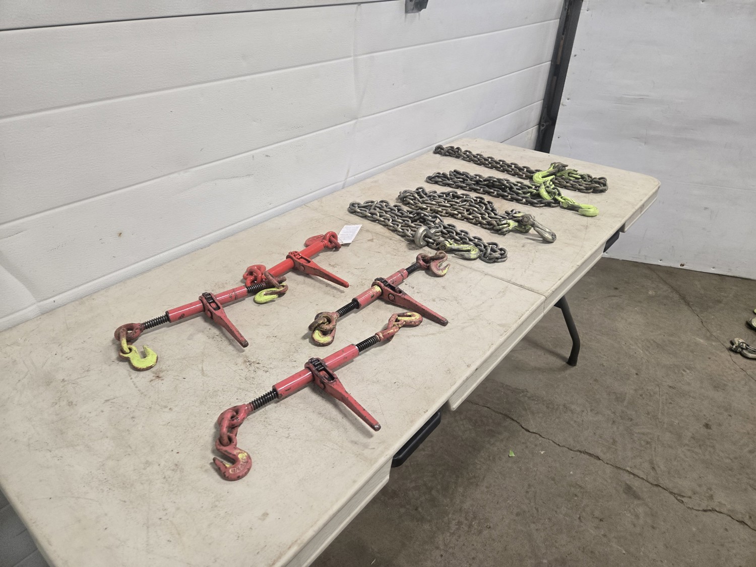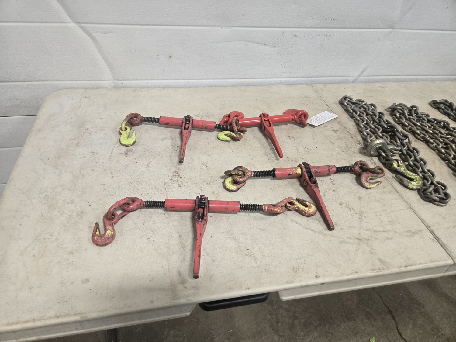 592 (4) 5/16 Inch Load Binders & (4) Grade 70 Chains