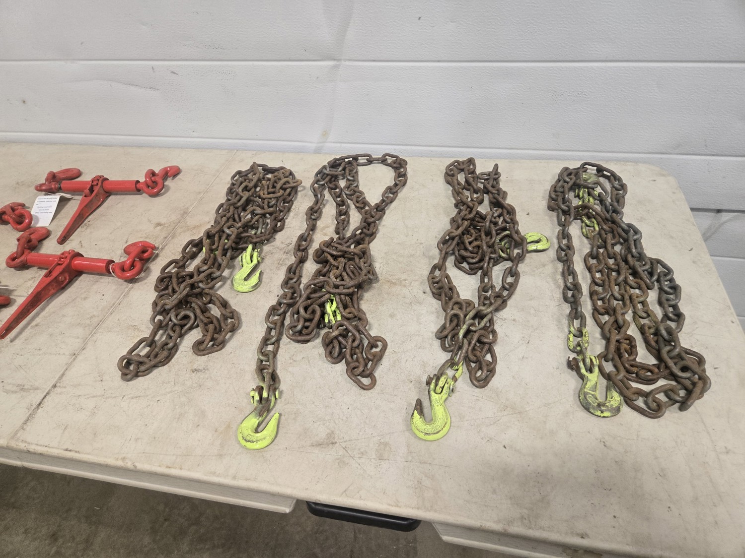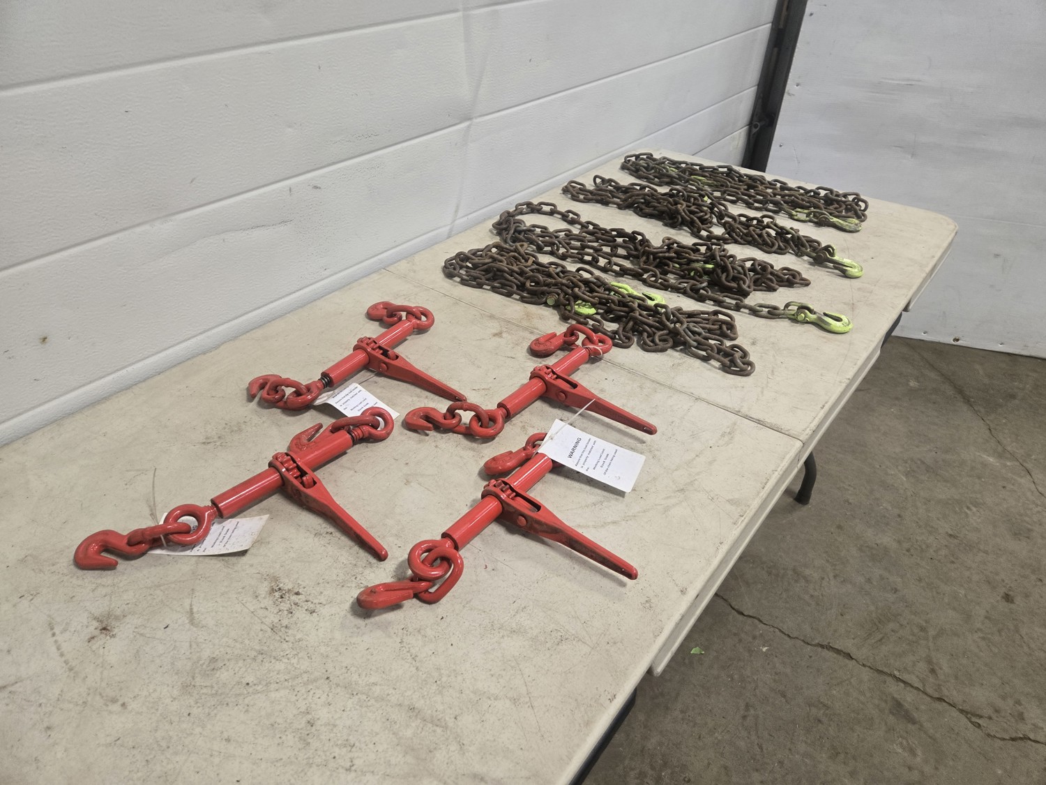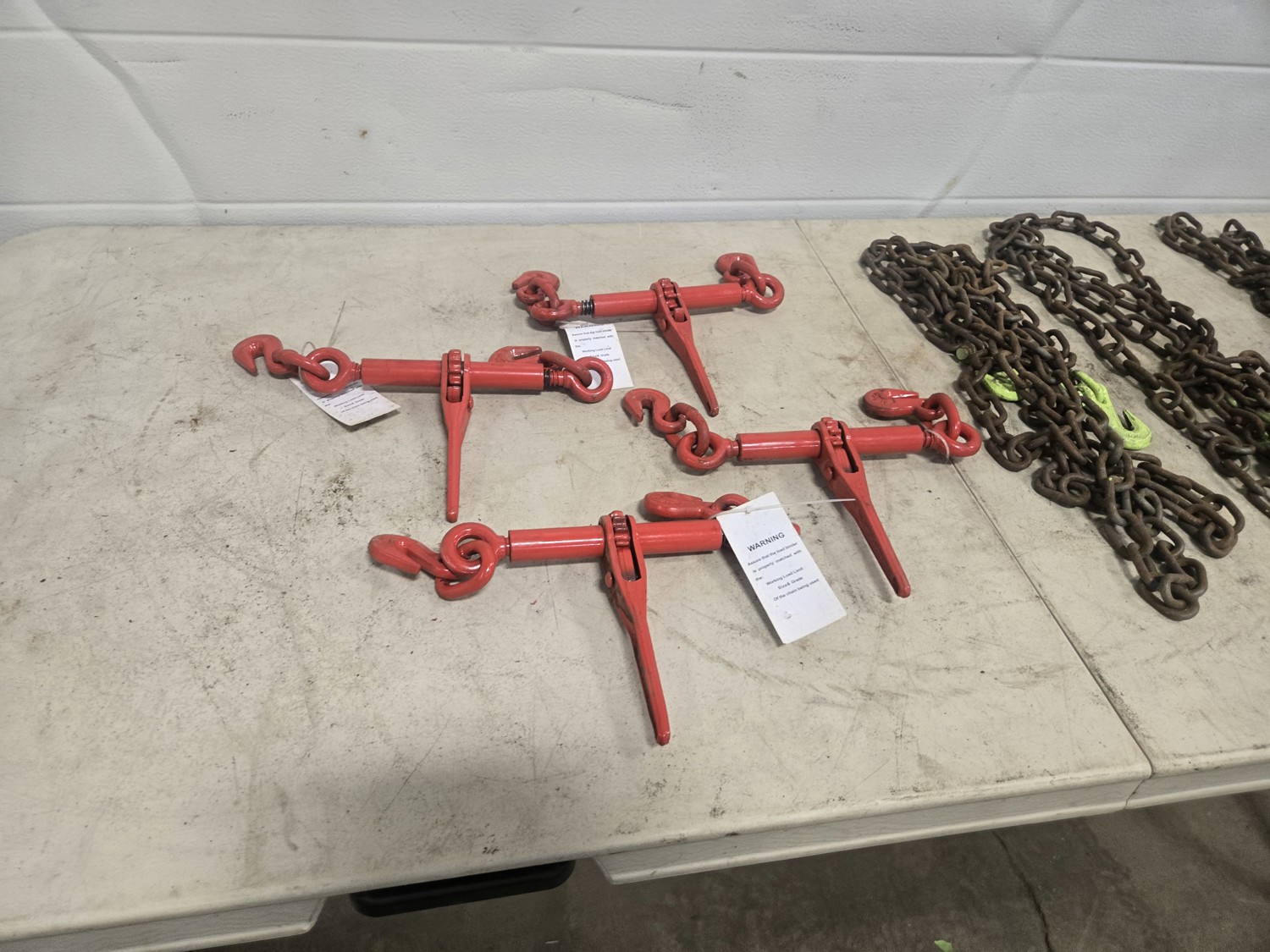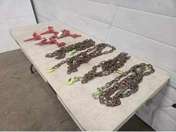 591 (4) 5/16 Inch Unused Load Binders & (4) Grade 70 Chains
