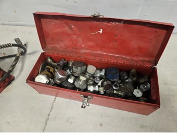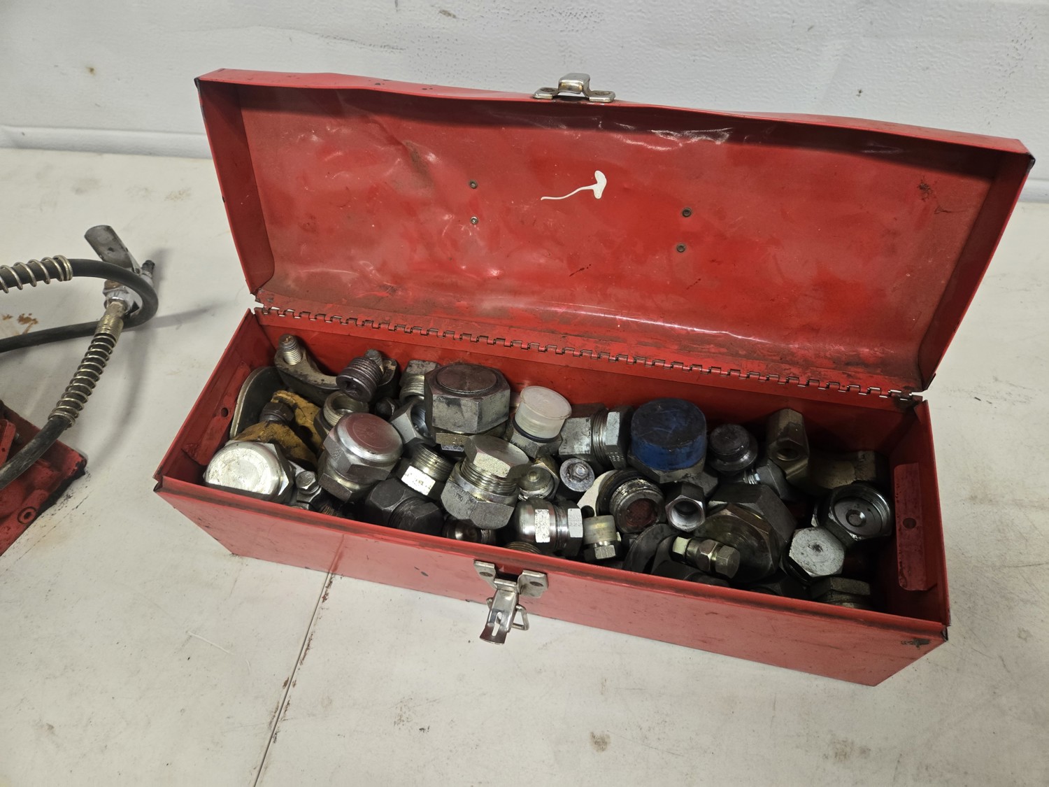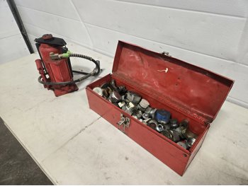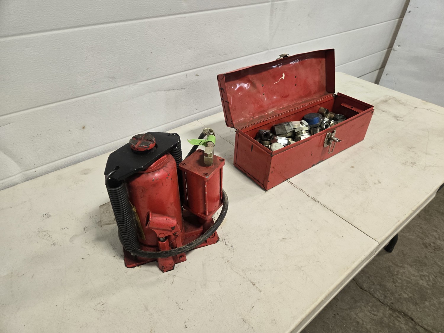 503 50 Ton Air Operated Bottle Jack & Tool Box of Hydraulic Fittings