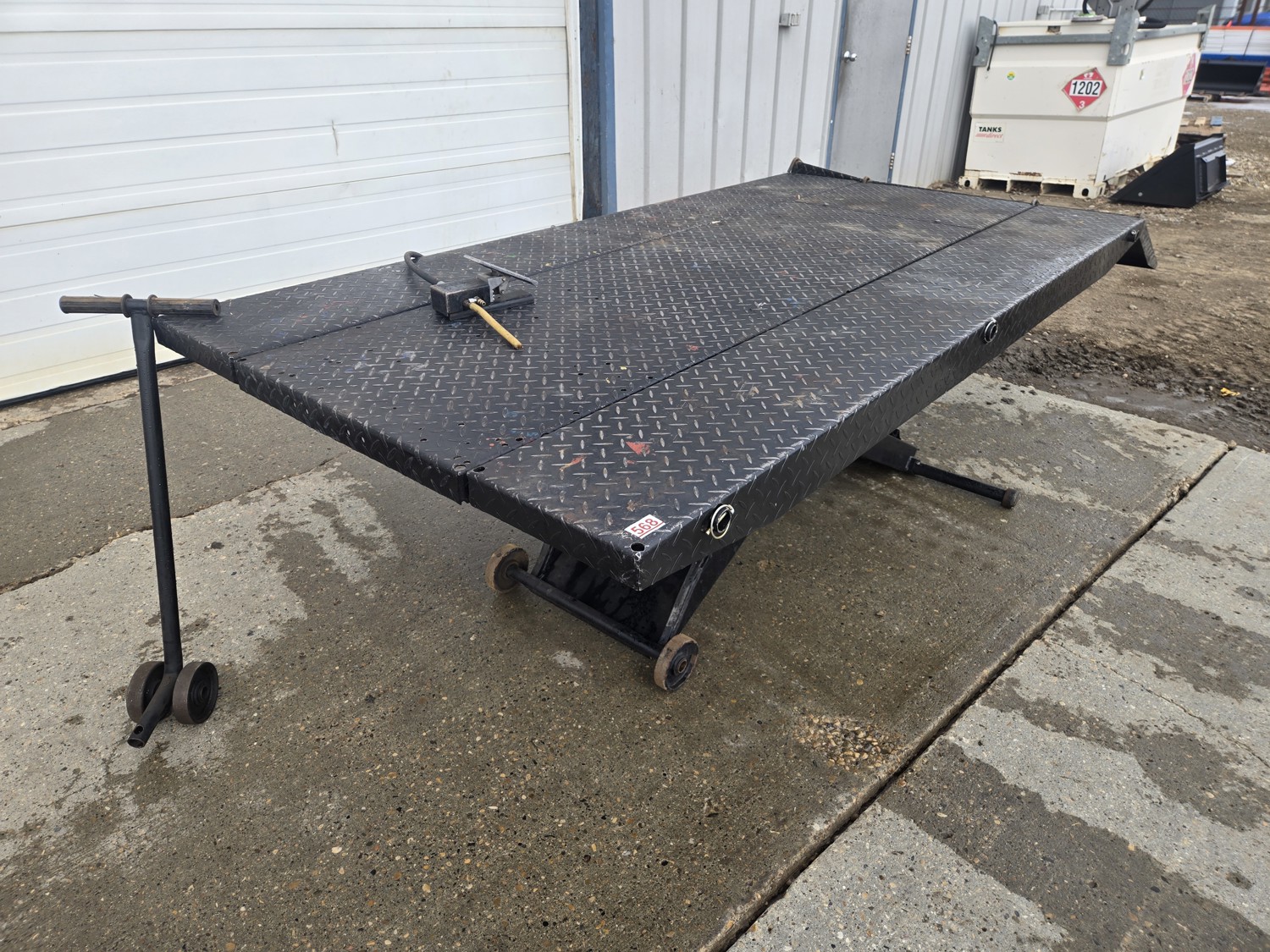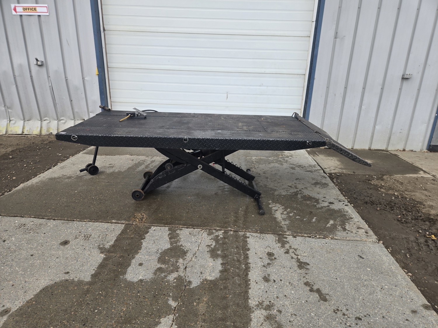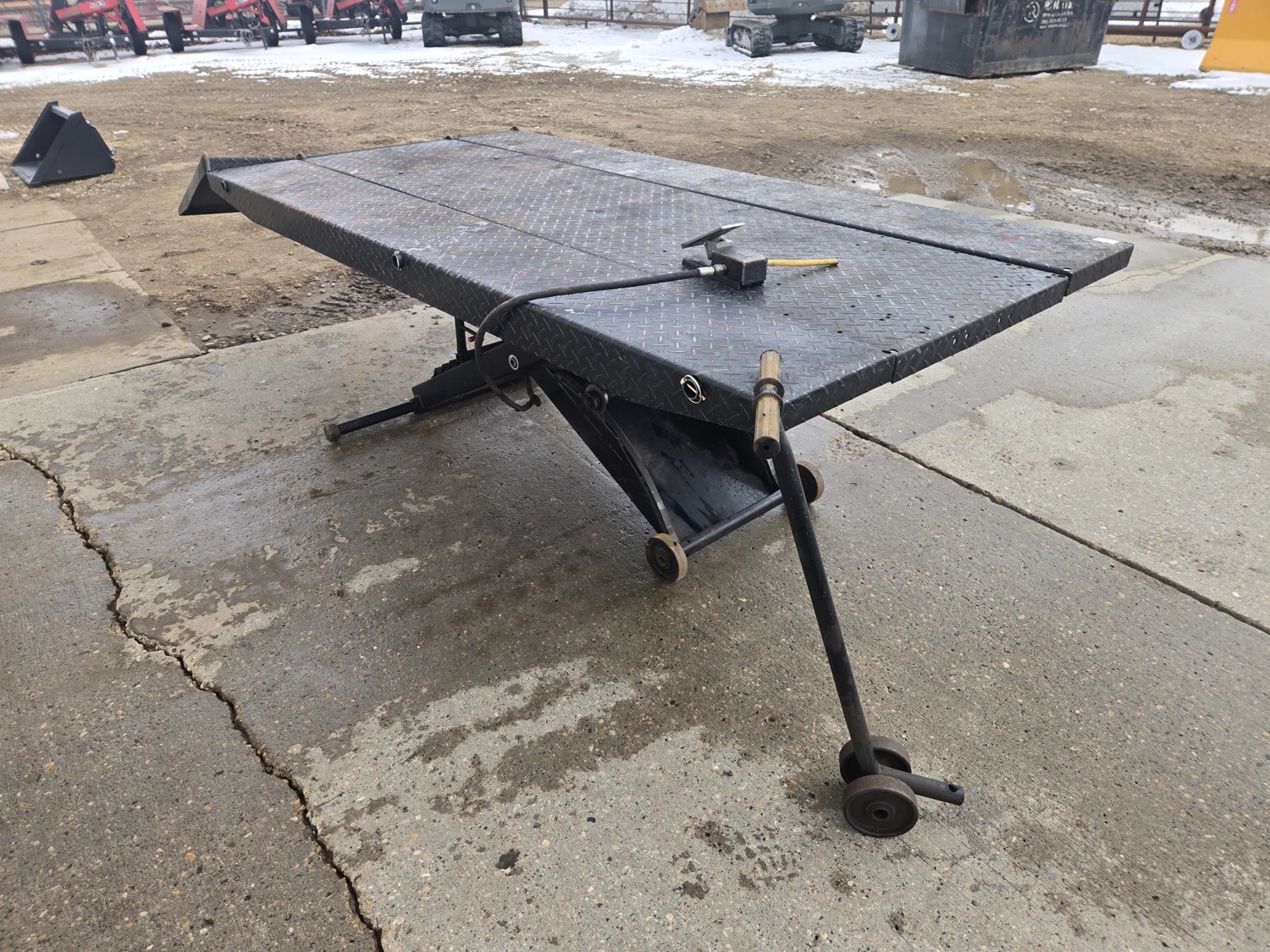 48 inch wide X 93 inch long, lift height 32 inch, 20 inch ramp, transport handle with wheels, good working condition