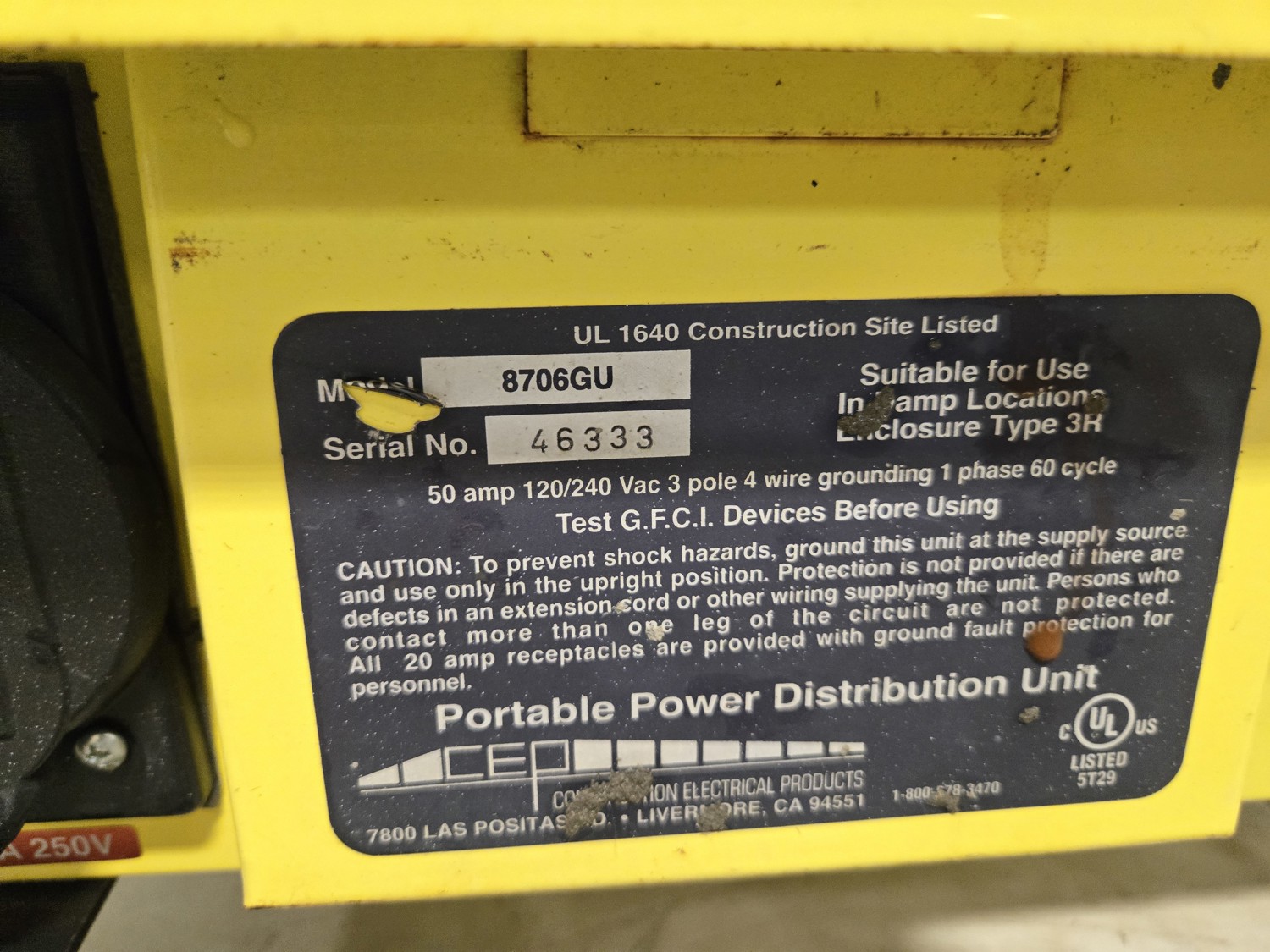 661 CEP 8706GU 50 Amp Portable Power Distribution Panel