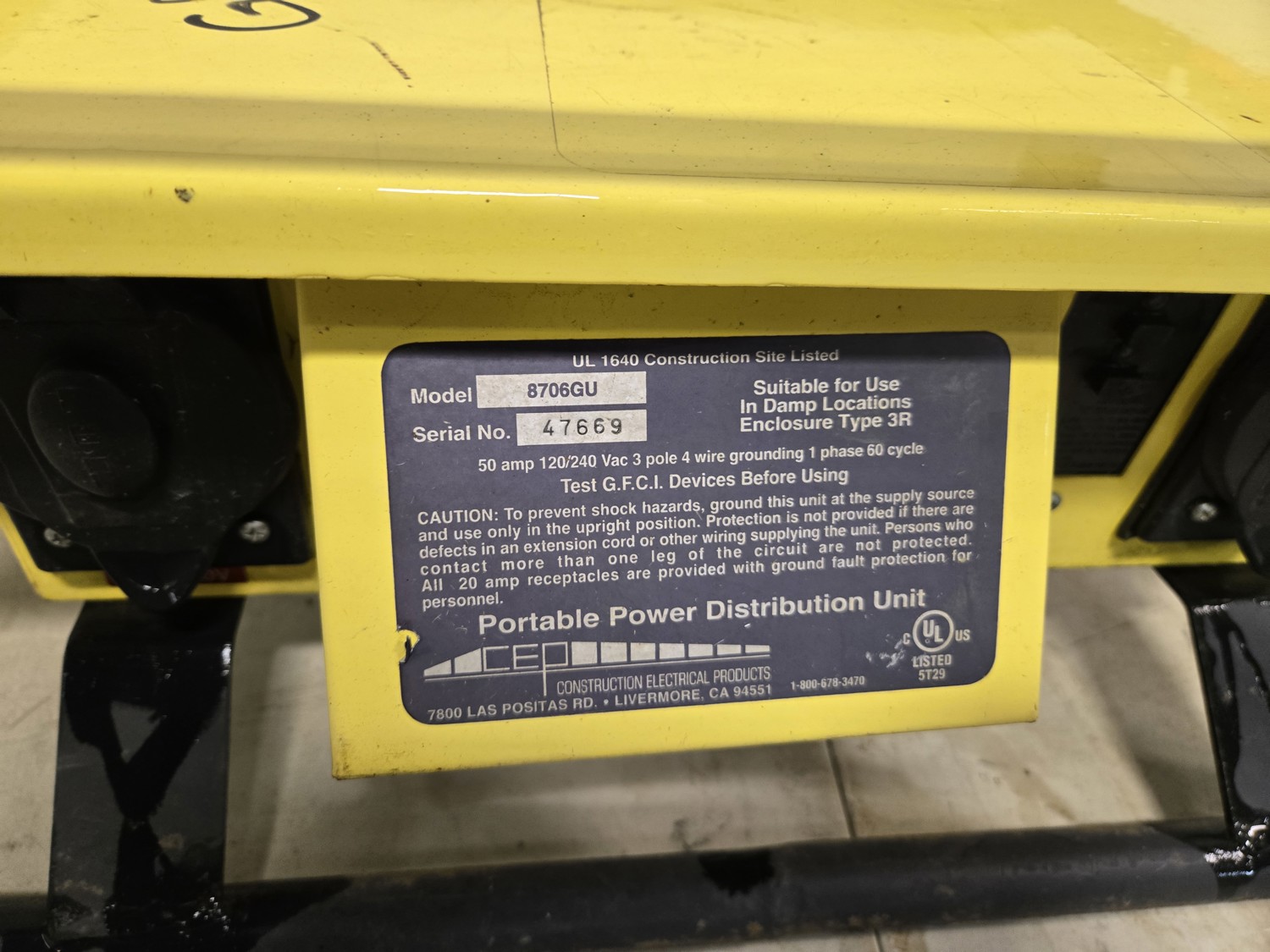 662 CEP 8706GU 50 Amp Portable Power Distribution Panel