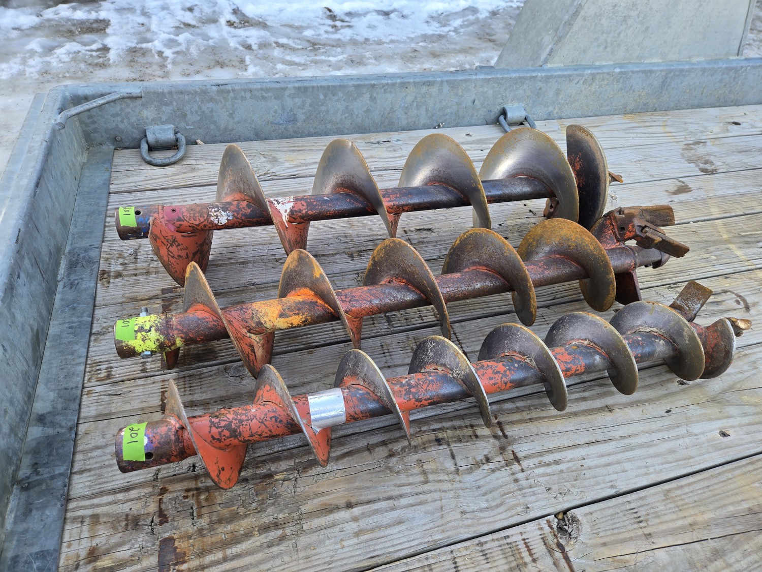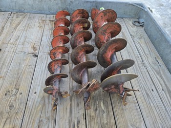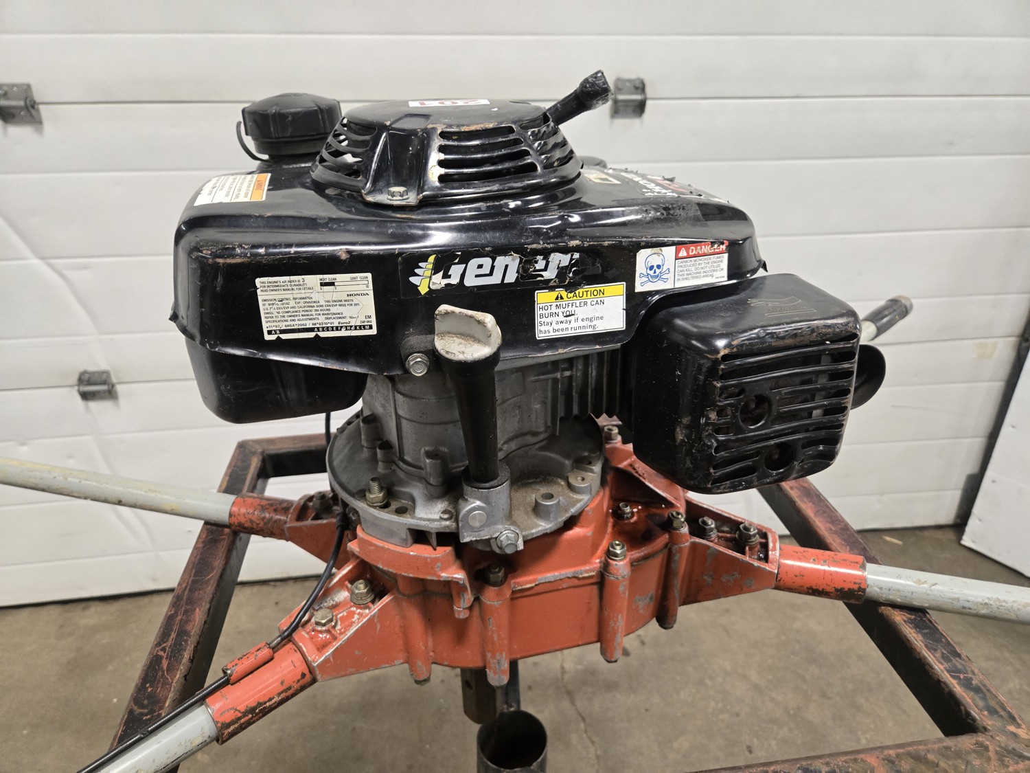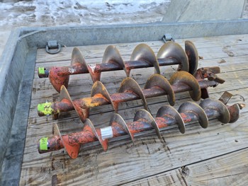 Honda GXV160 gas engine, (1) 6 inch auger, (1) 8 inch auger, (1) 10 inch auger, (1) auger extension, stand not included, running