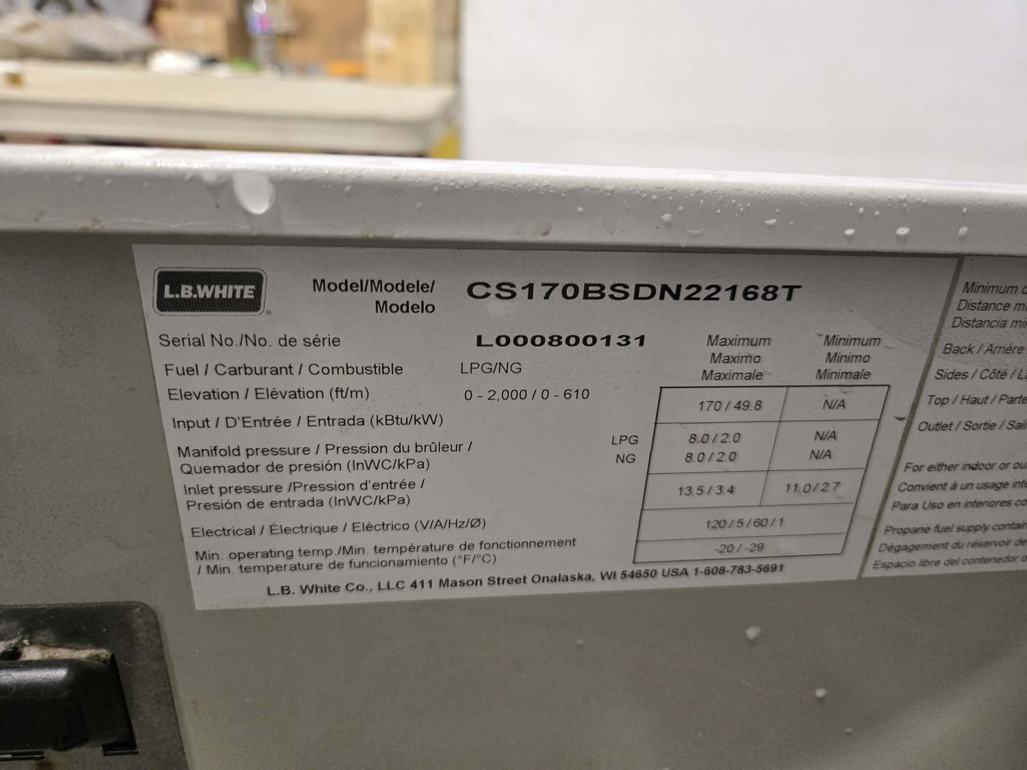 359 LB White Premier 170DF 170,000 BTU Natural Gas Or Propane Heater