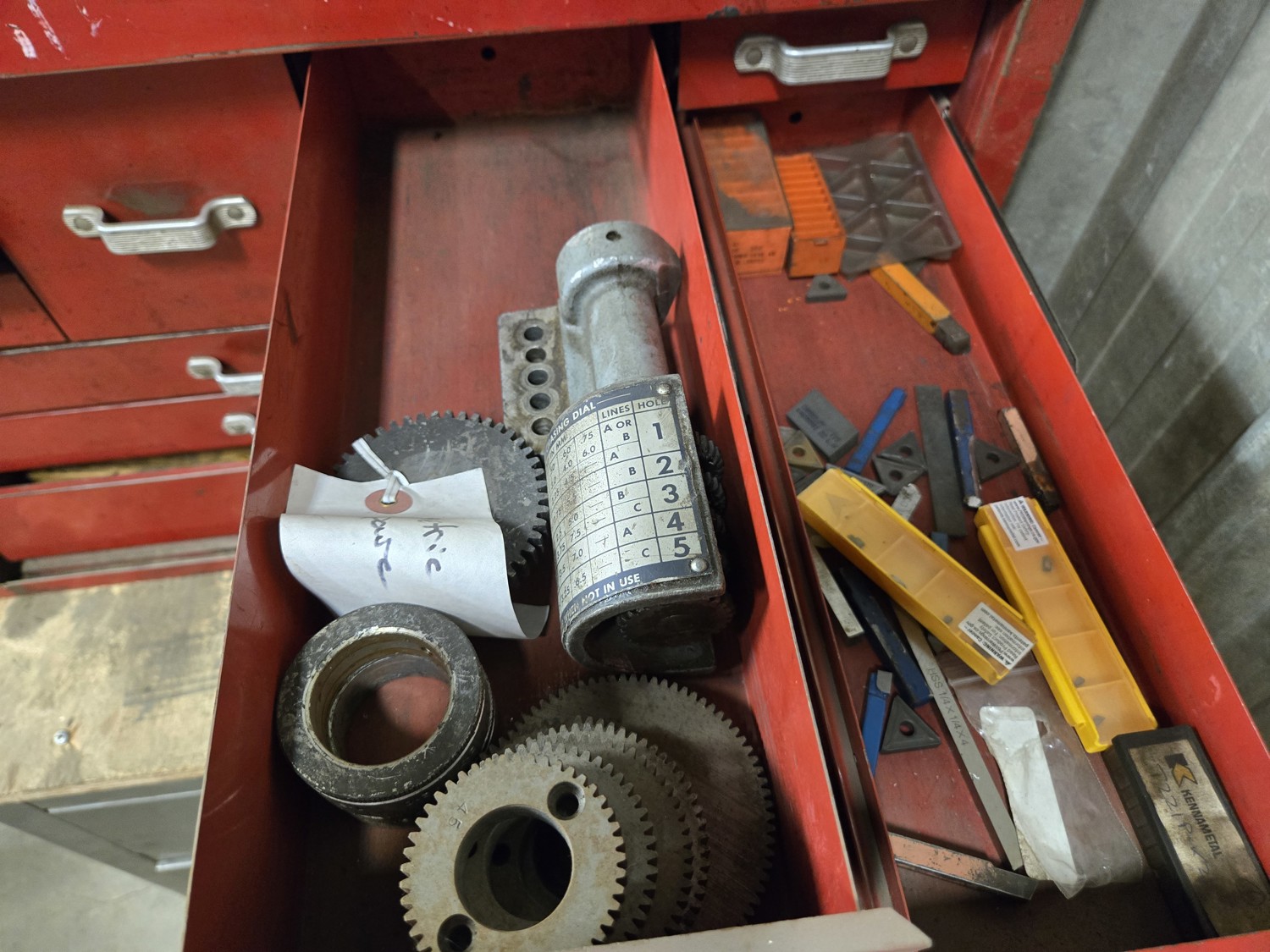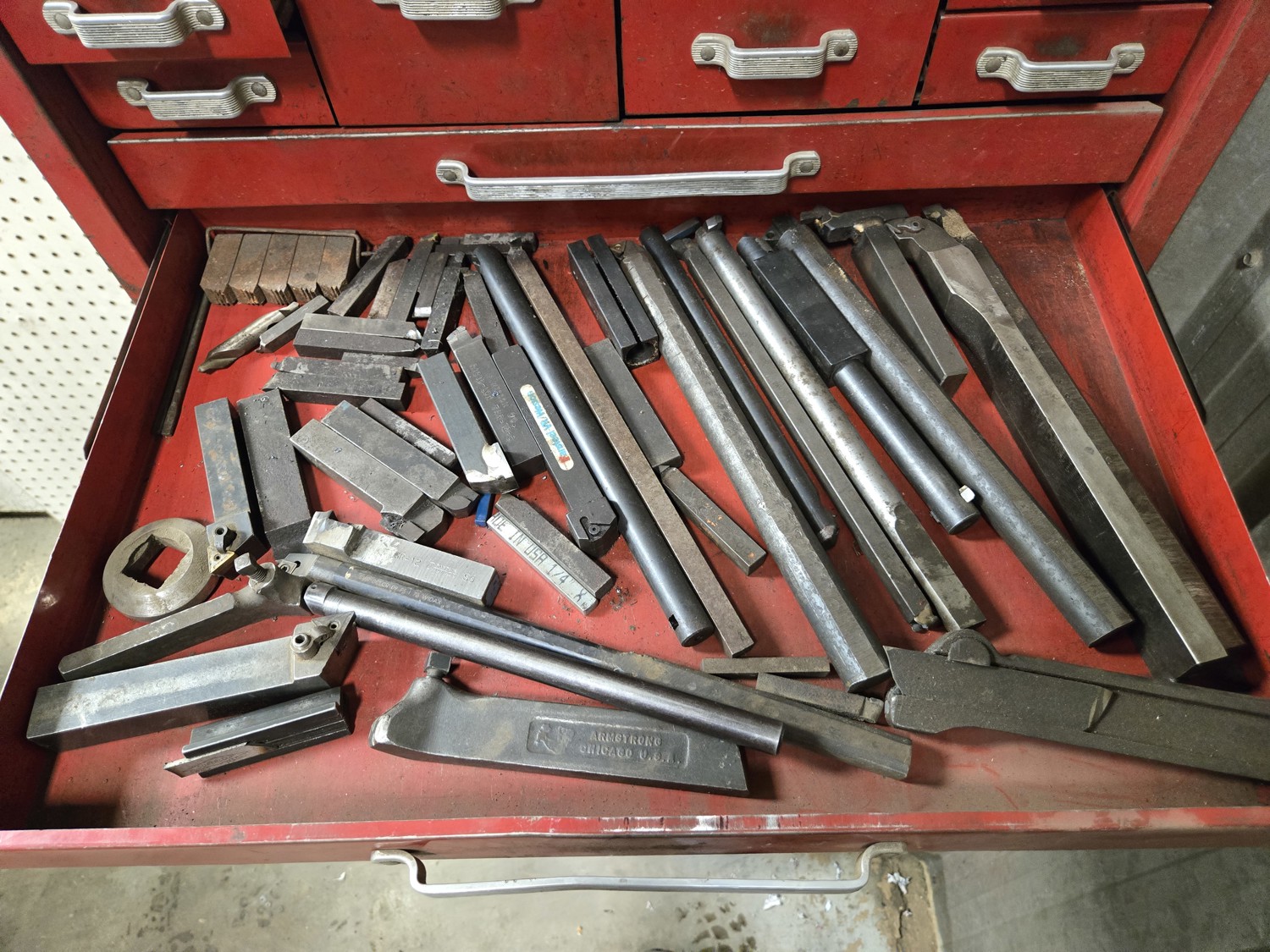 1.5 HP 3 phase, with (2) tool boxes full of accessories, new Morse taper tail stock, Morris taper drill bits, flat bottom drill bits, (3) micrometers, (1) digital caliper, extra 4 jaw chuck, face plates, Large selection of cutter and cutter holders, magnetic dial indicators, oil, round stock, this a real complete lathe for the serious machinist, in very nice condition, the motor may have to changed for those who don't have 3 phase power