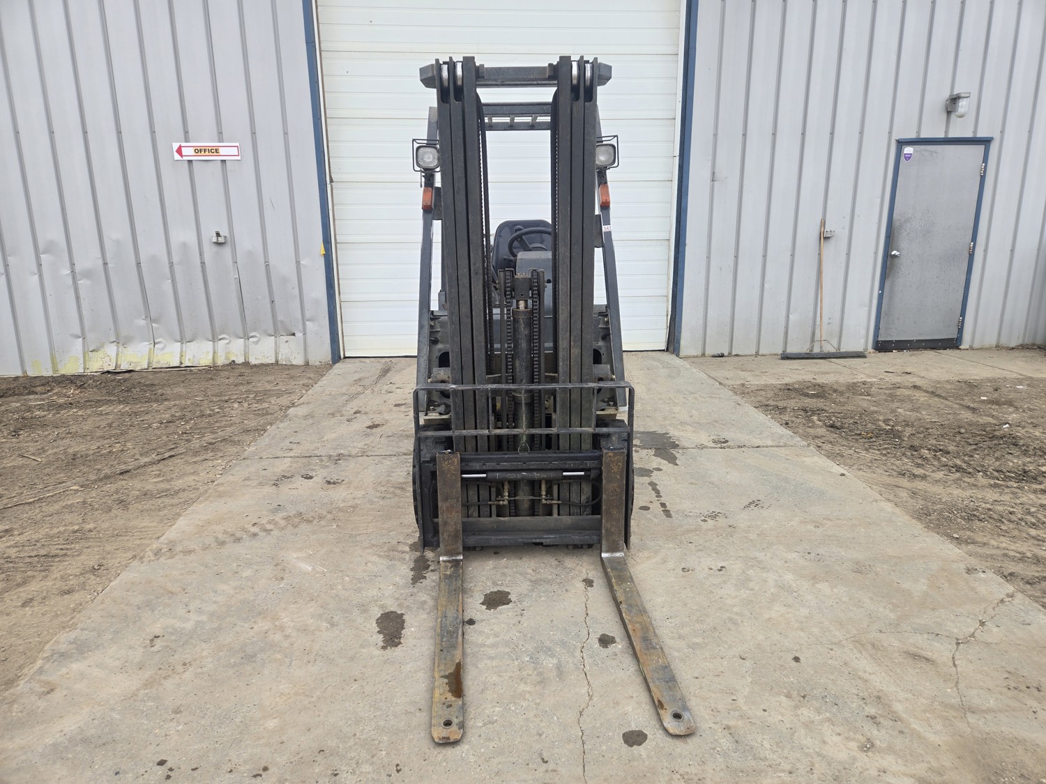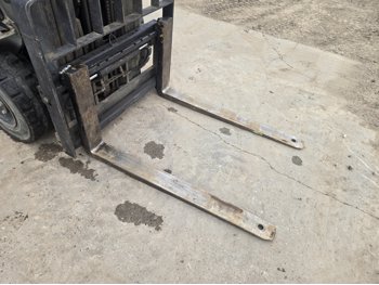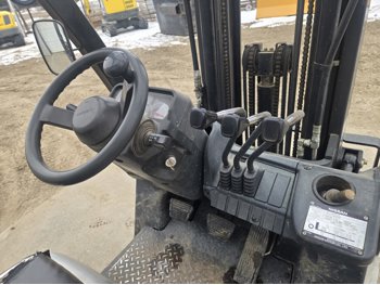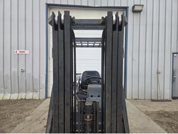 Open station with ROPS, propane, hydro transmission, (2) propane tanks, 187 inch max lift height, 3 mast stages, 48 inch pallet forks, side shift, 6.50-10 front tires, 5.00-8 rear tires
