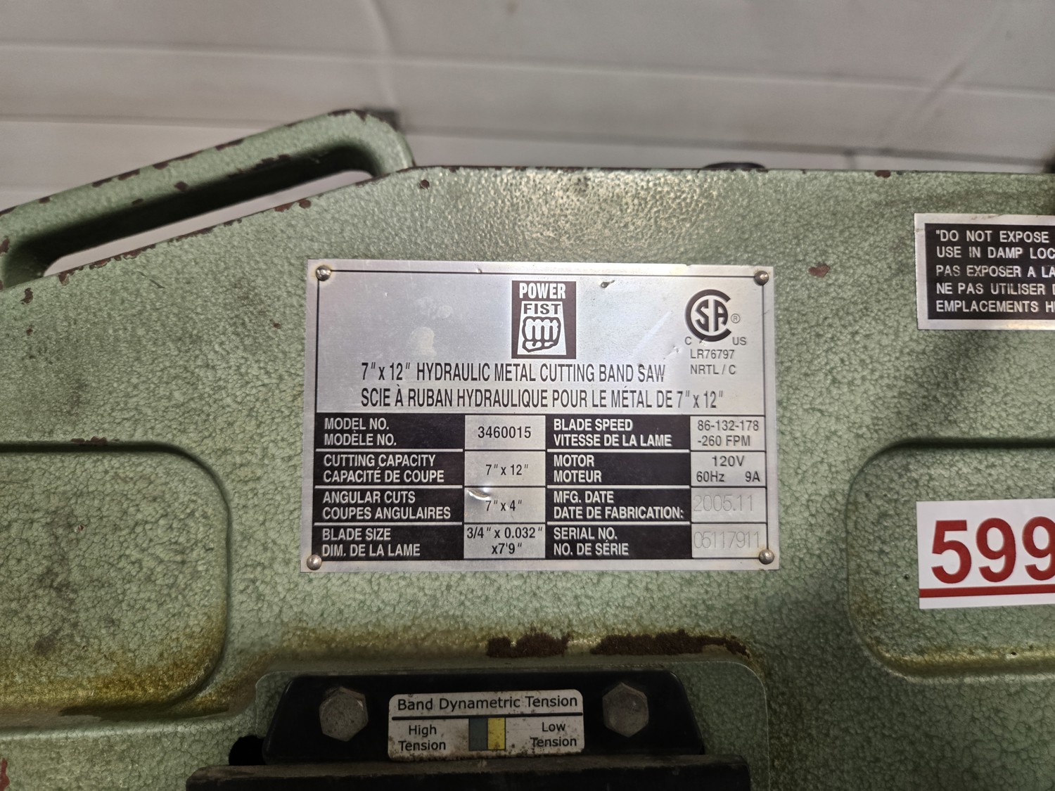 435 Power Fist 7 Inch X 12 Inch Hydraulic Metal Cutting Band Saw