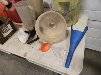 520 Qty of Funnels, Jerry Cans, (4) Barrel Funnels, Oil Pitchers