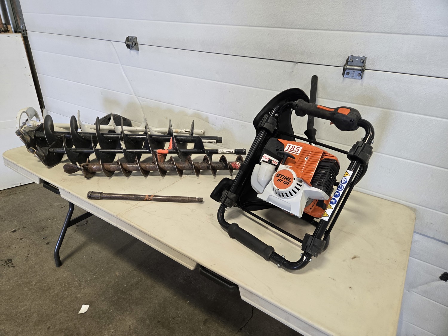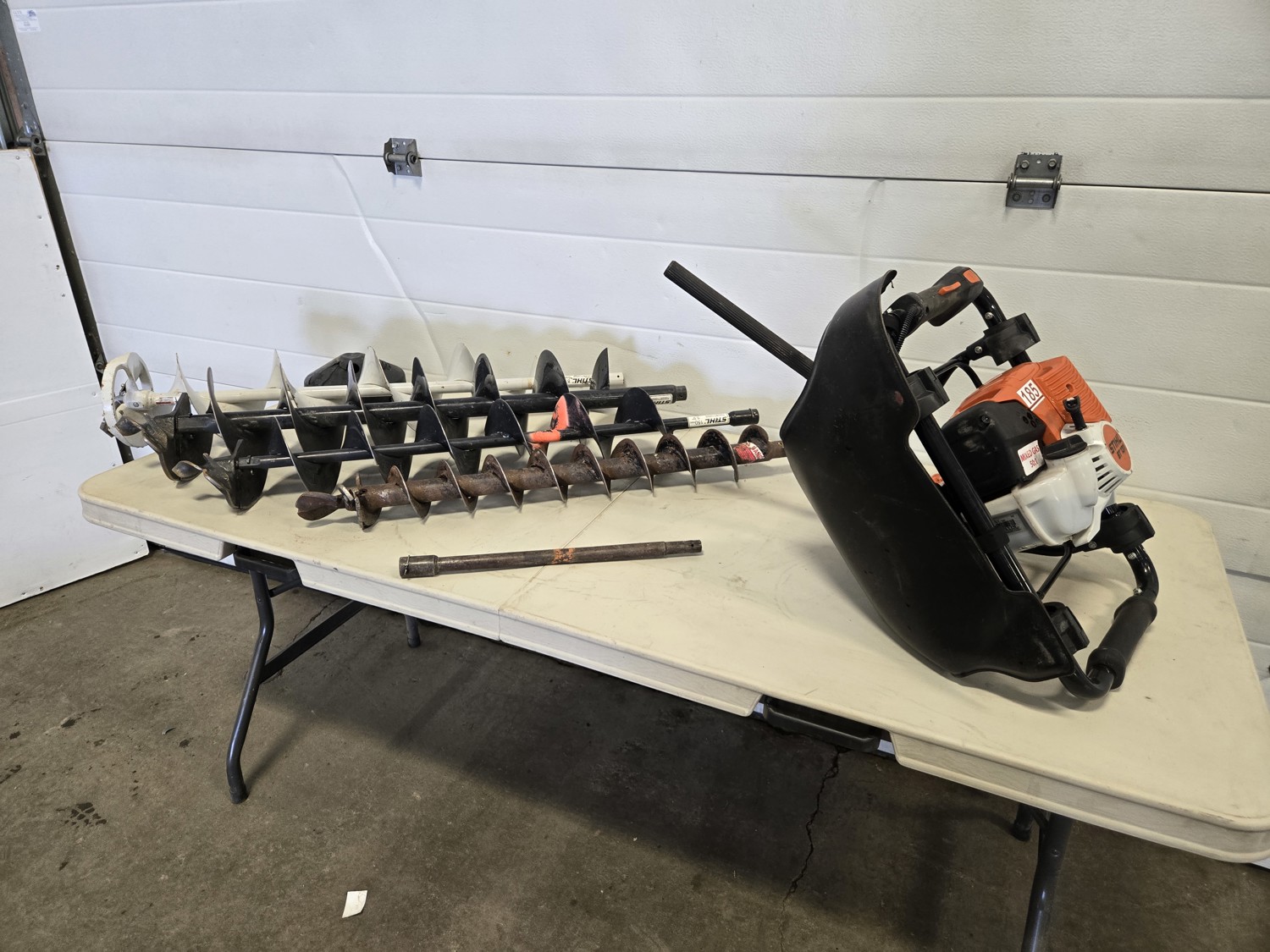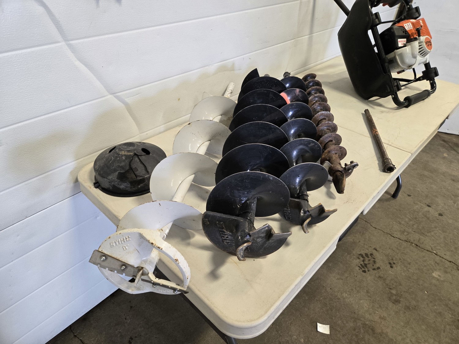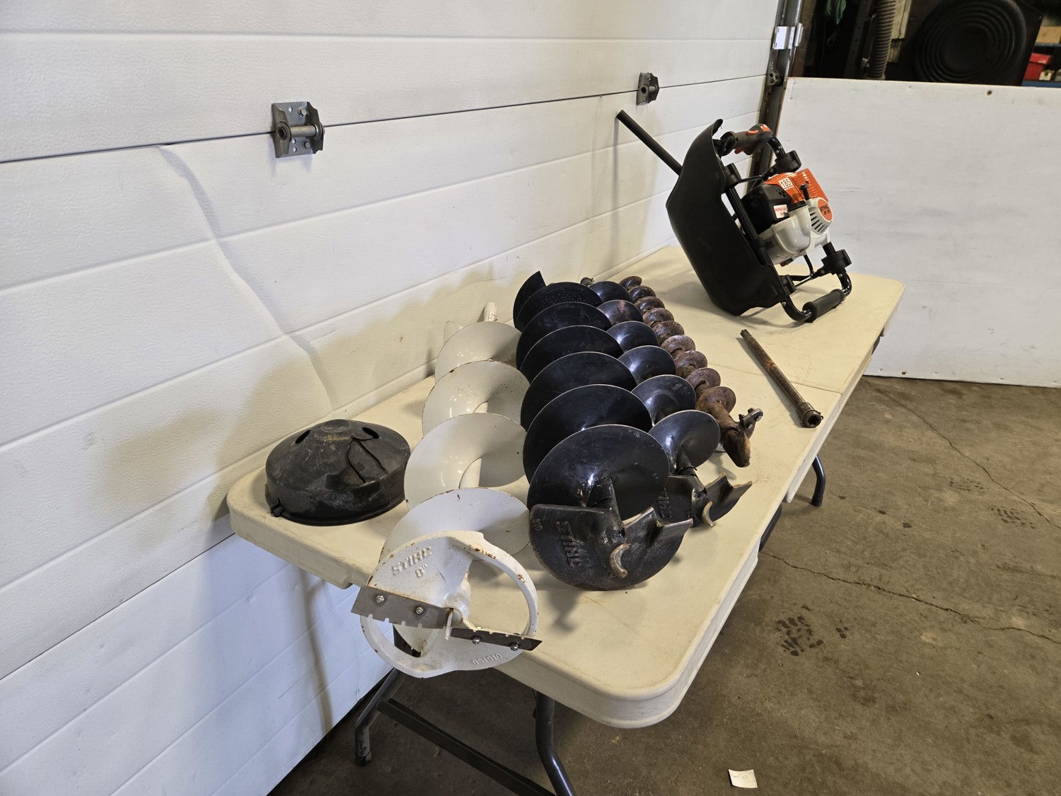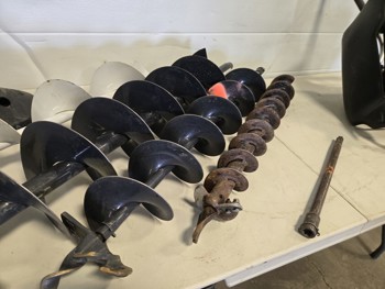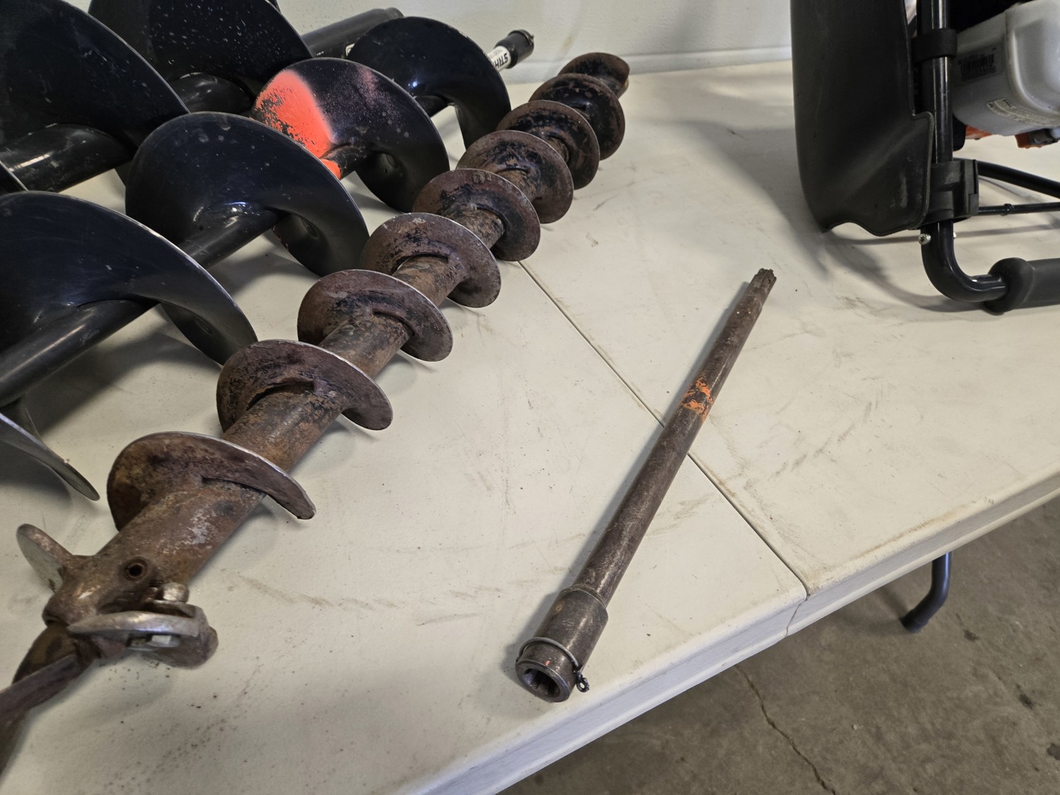 (1) 4 inch auger, (1(6 inch auger, (1) 8 inch auger, (1) 8 inch ice auger, (1) extension
