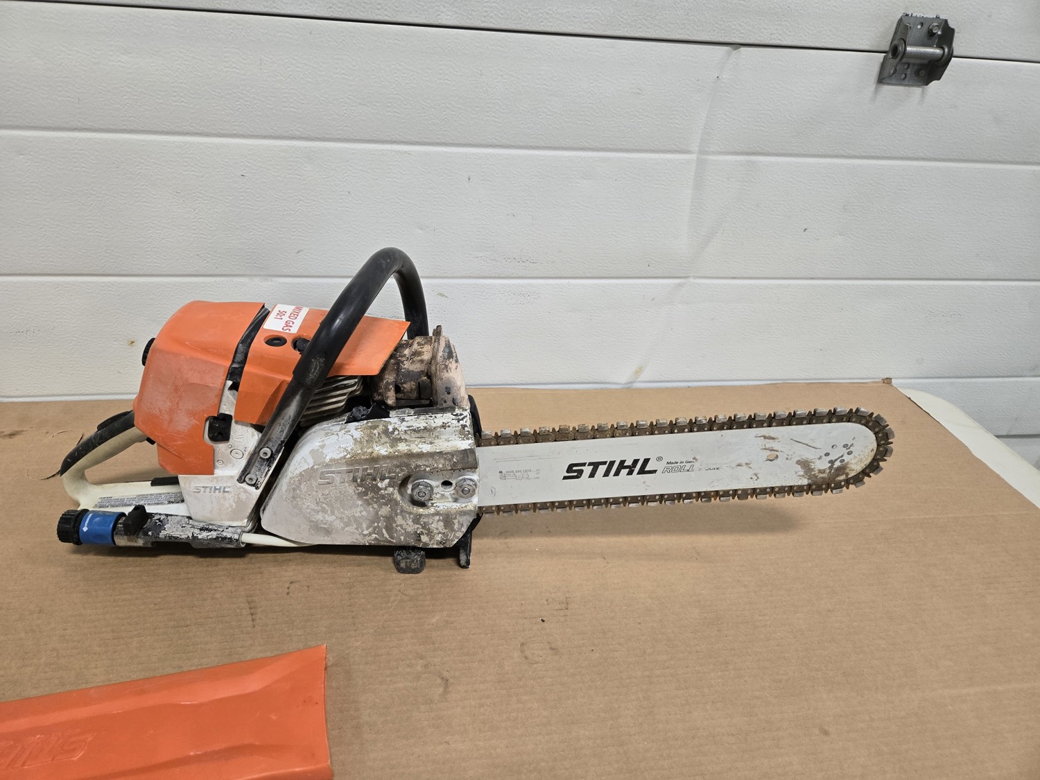 16 inch bar & chain, manual water valve, Unit still runs but compression is low