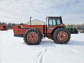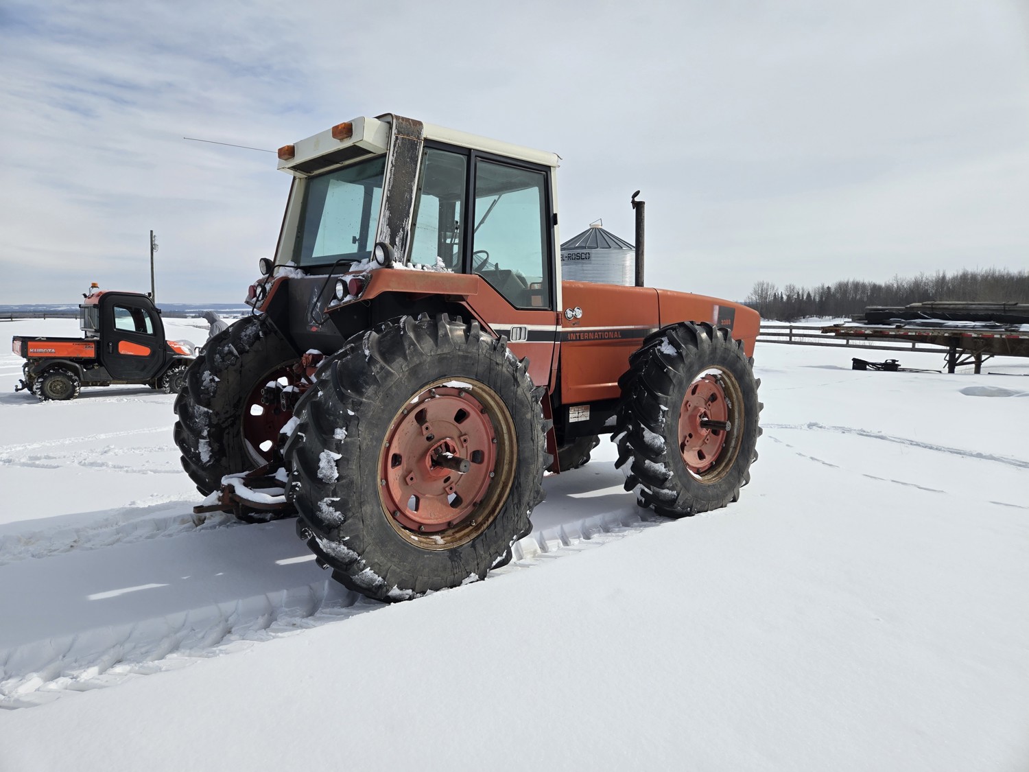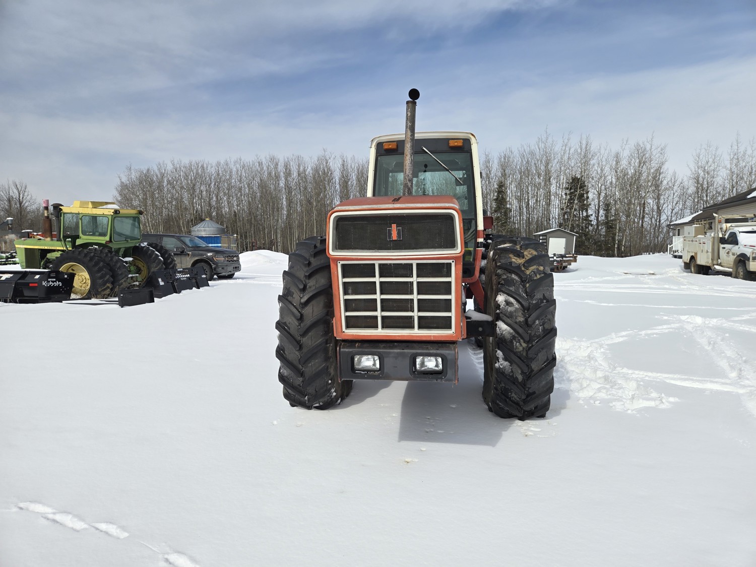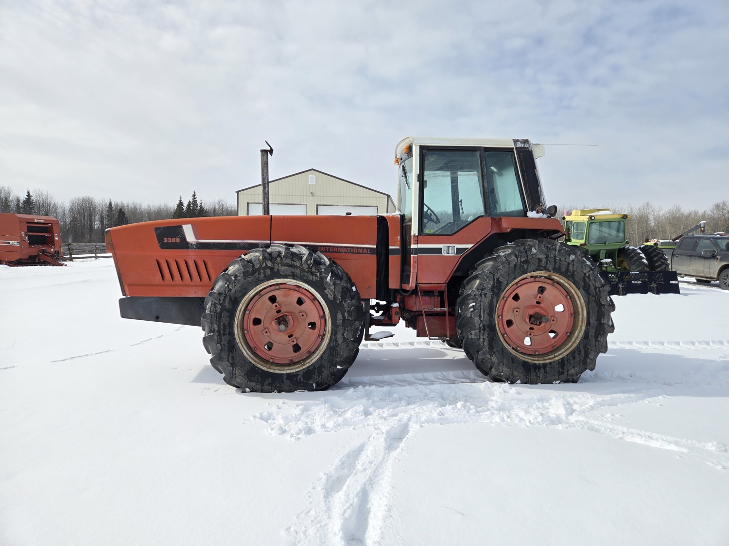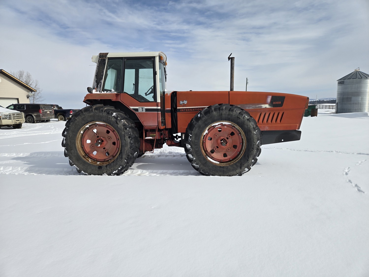 International DT436B 7.1 L 6 cylinder engine, 130 PTO HP, 16 speed partial power shift transmission, cab, A/C, 540/1000 PTO, 2 rear hydraulic outlets, 18.4R38 tires