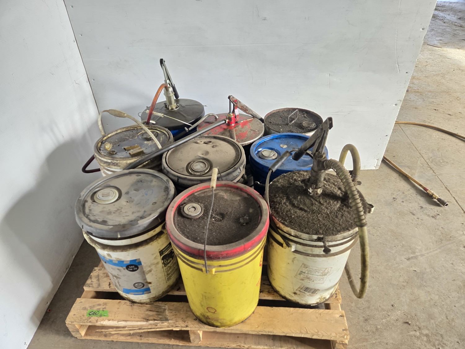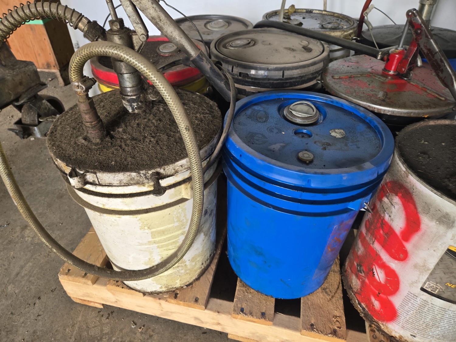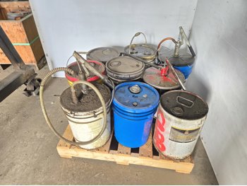 (3) Pump Pails, Qty of Motor Oil, Brake Clean & Transmission Oil