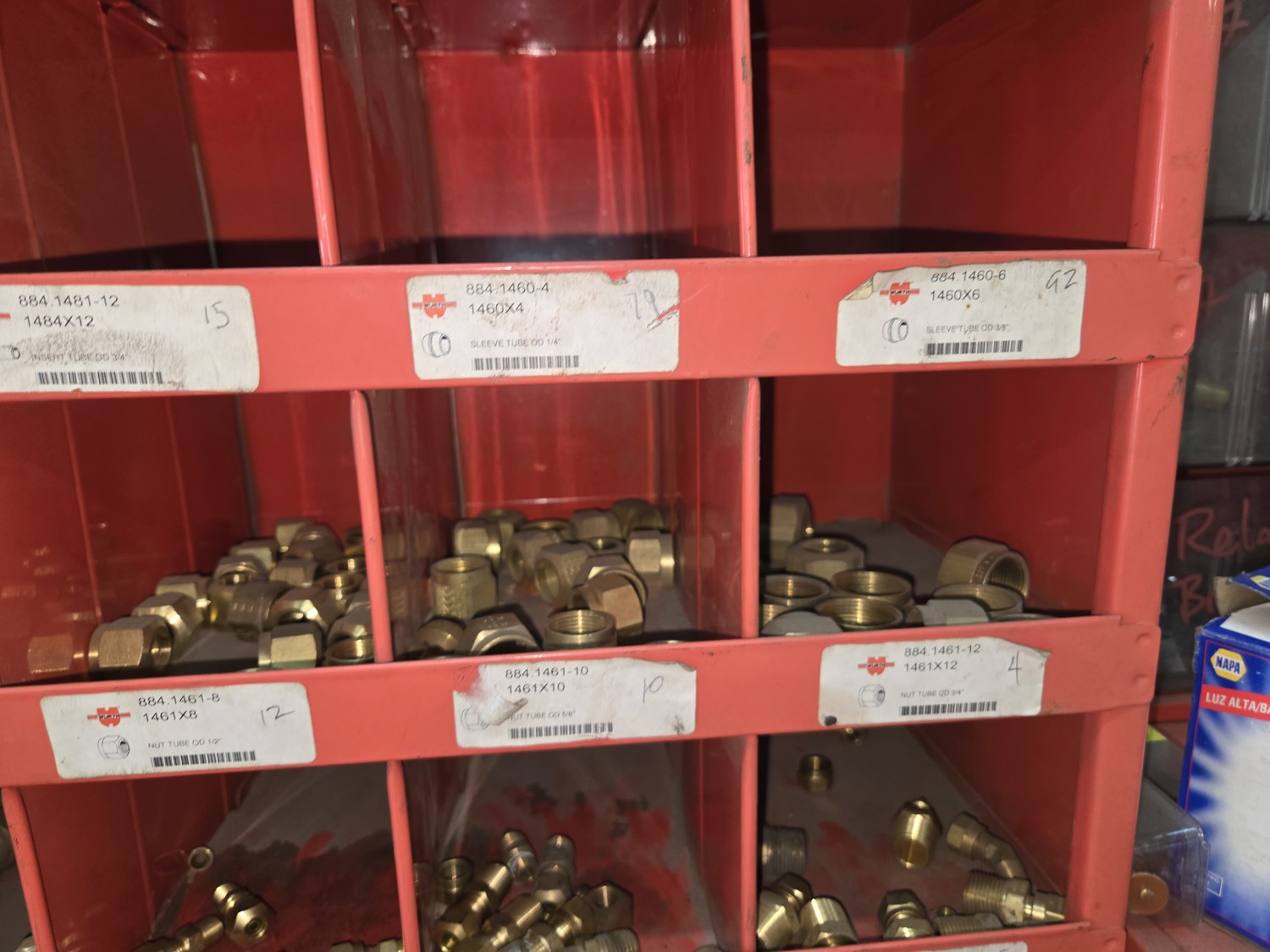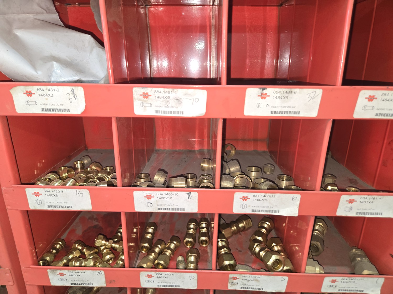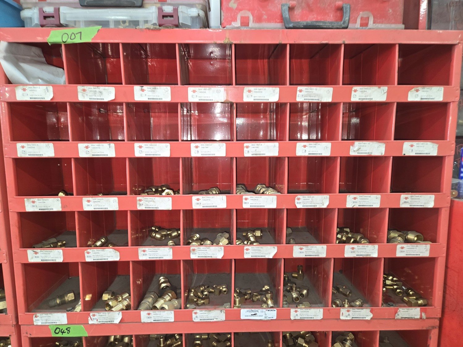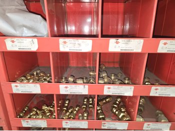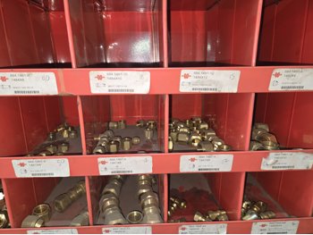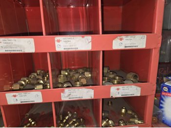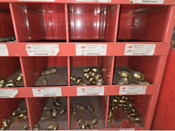 40 Compartment Parts Bin with Large Qty of Assorted Brass Fittings