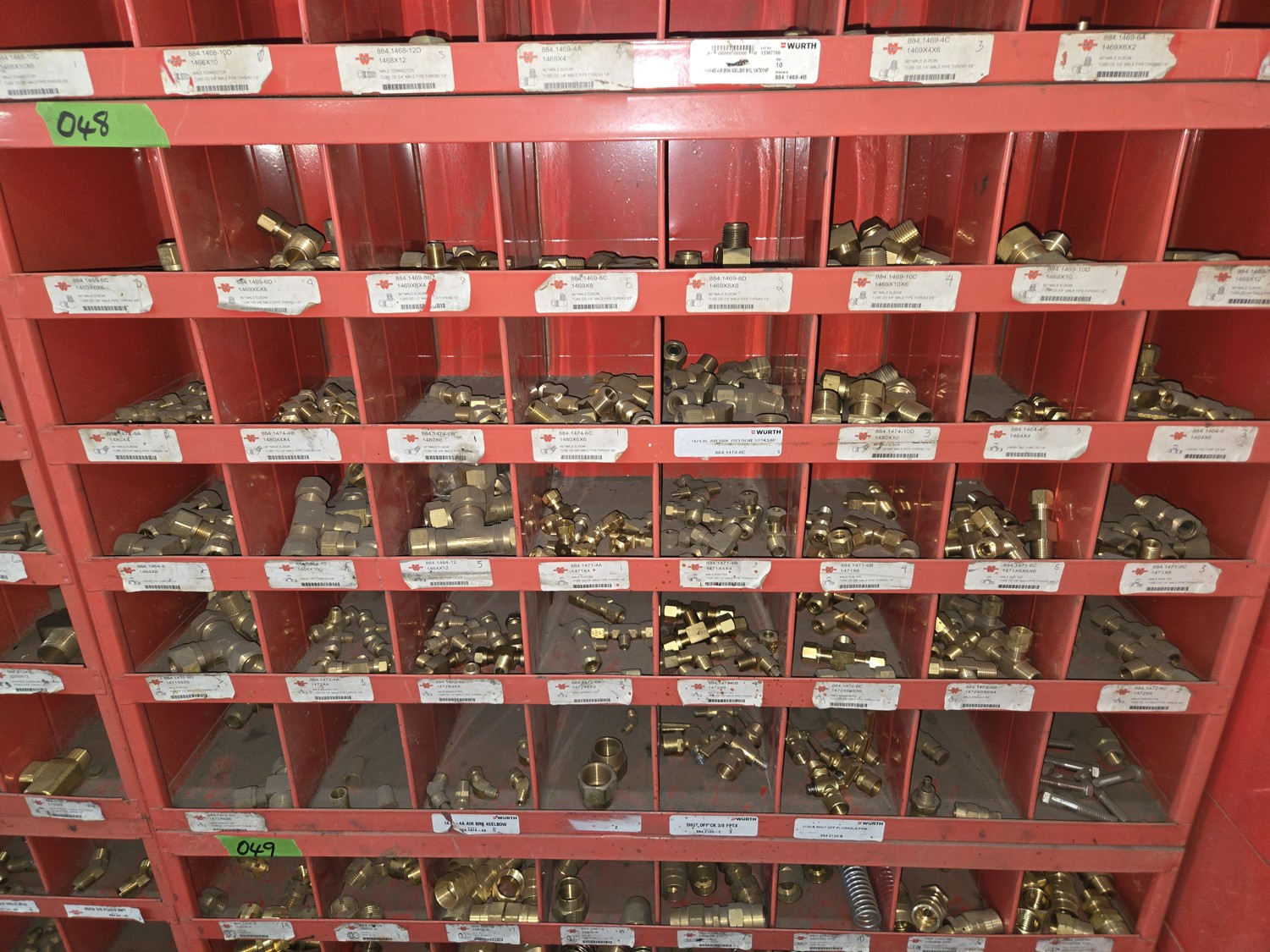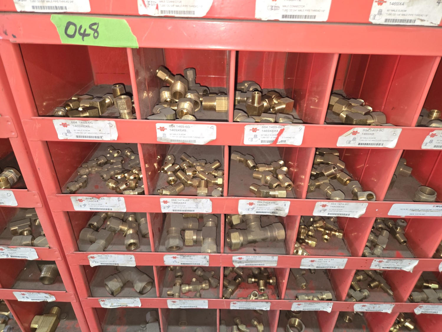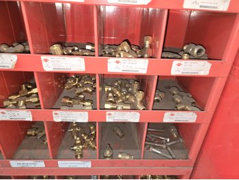 40 Compartment Parts Bin with Large Qty of Assorted Brass Fittings