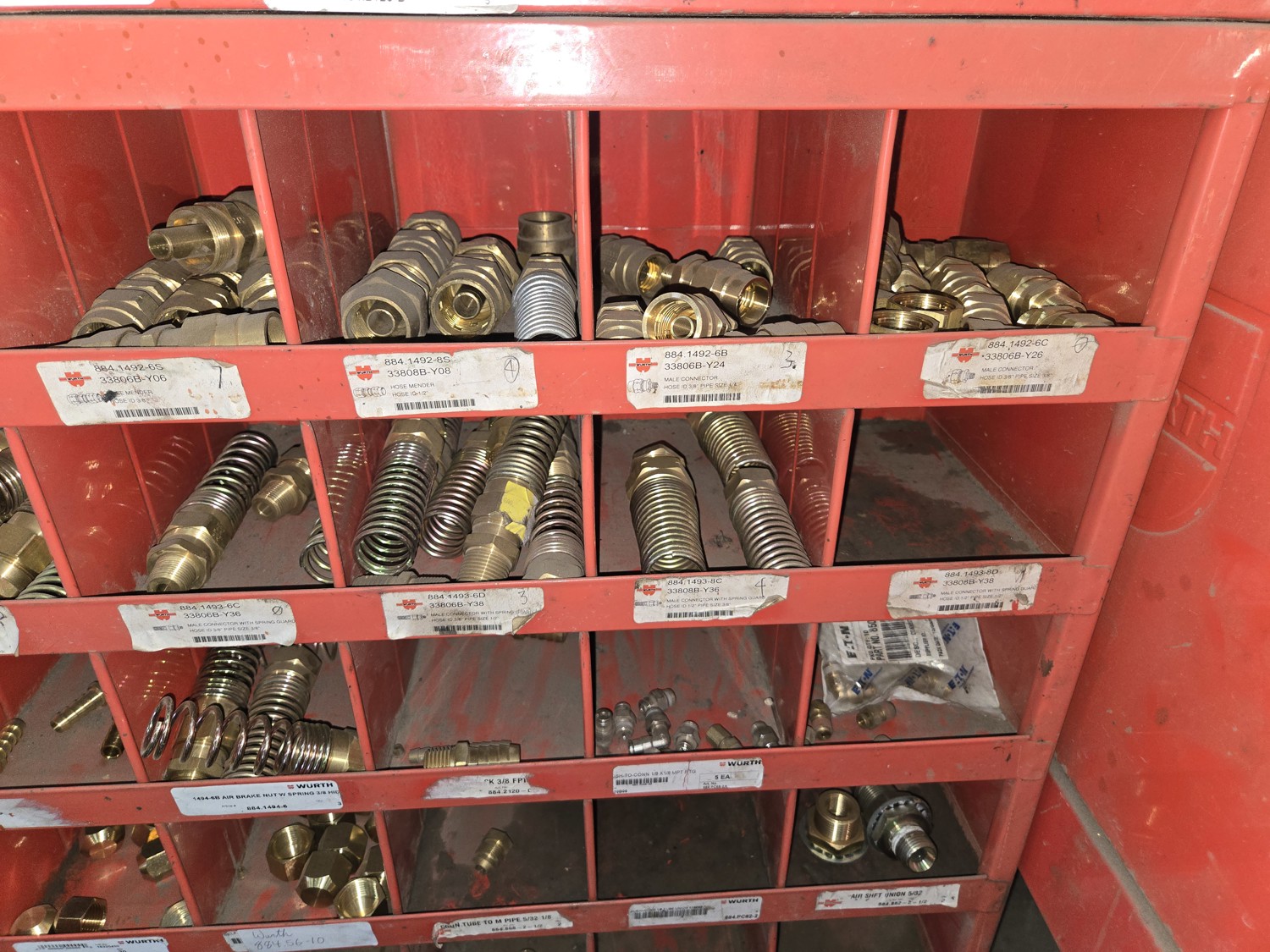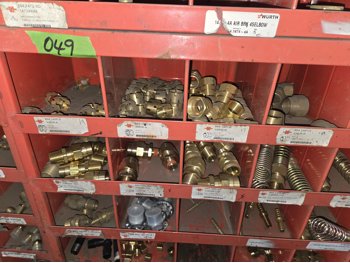 40 Compartment Parts Bin with Large Qty of Assorted Brass Fittings