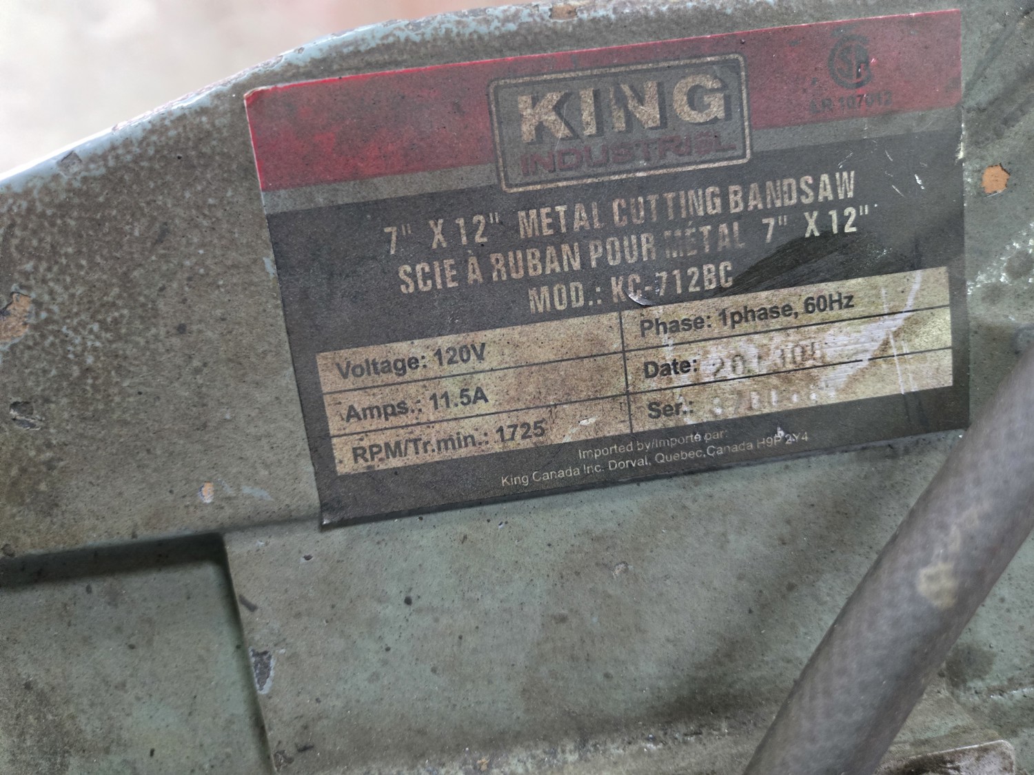 King 7 Inch X 12 Inch Metal Cutting Band Saw