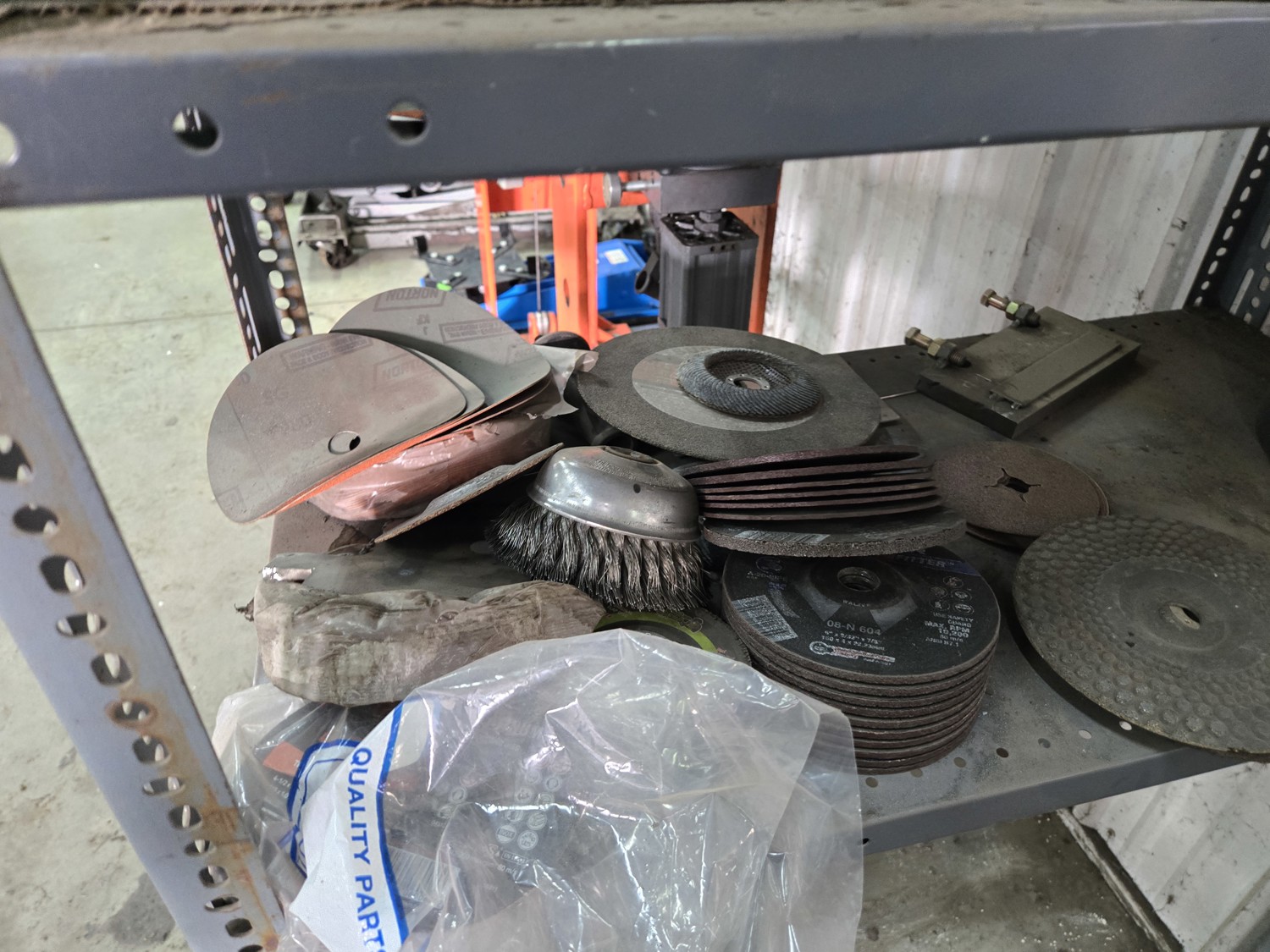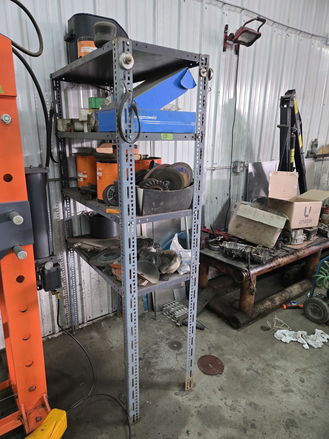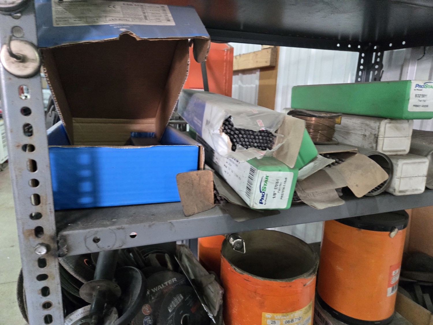 welding rods, grinding disc's and miscellaneous, shelf 18 inch deep X 36 inch wide X 72 inch high