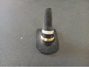 Ladies ring-Two Channels size unknown containing (22) diamonds, size unknown. Men's ring, size unknown.