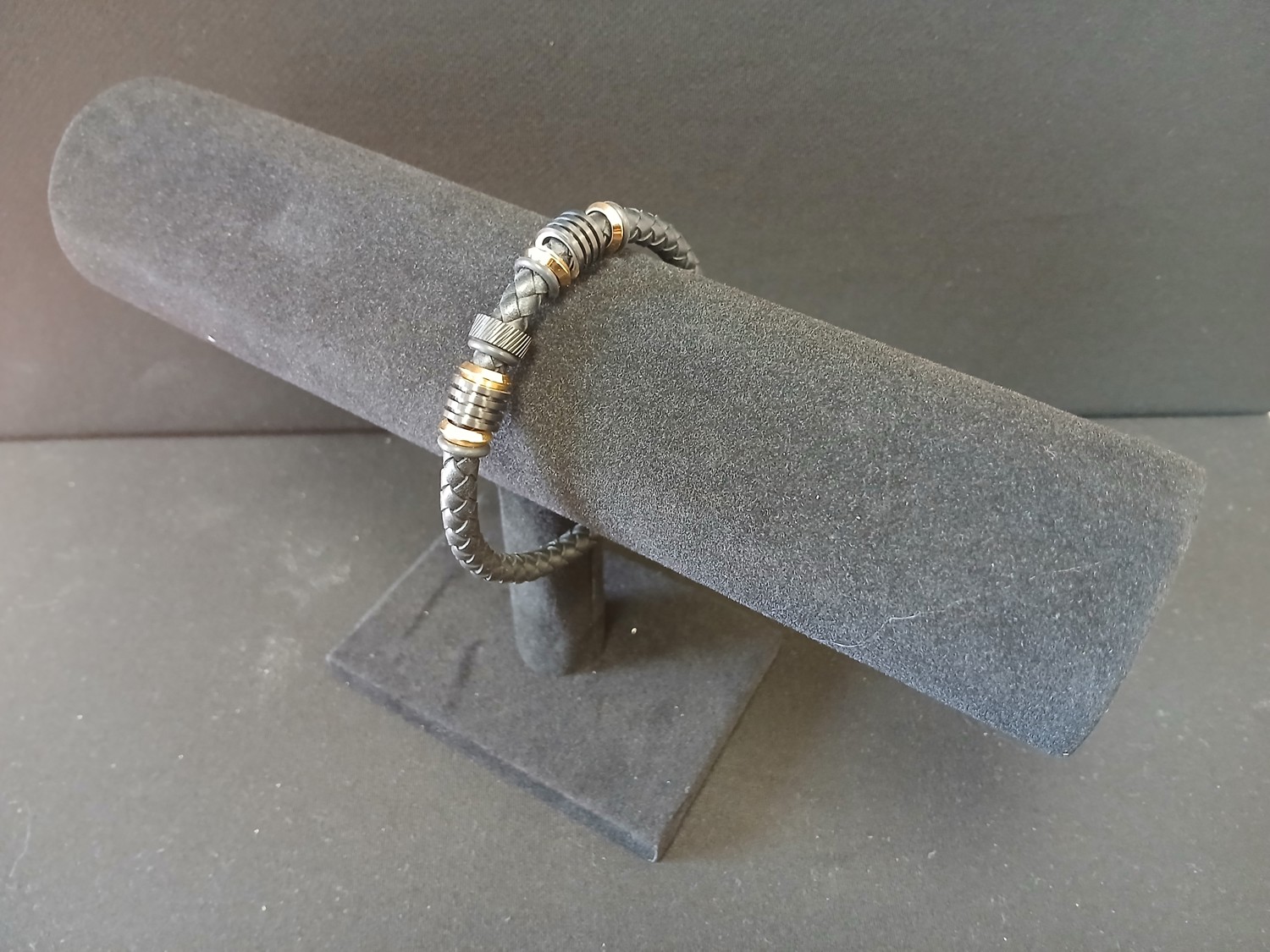 Black Jack Men's Genuine Leather and Stainless Steel Bracelet (Unused)