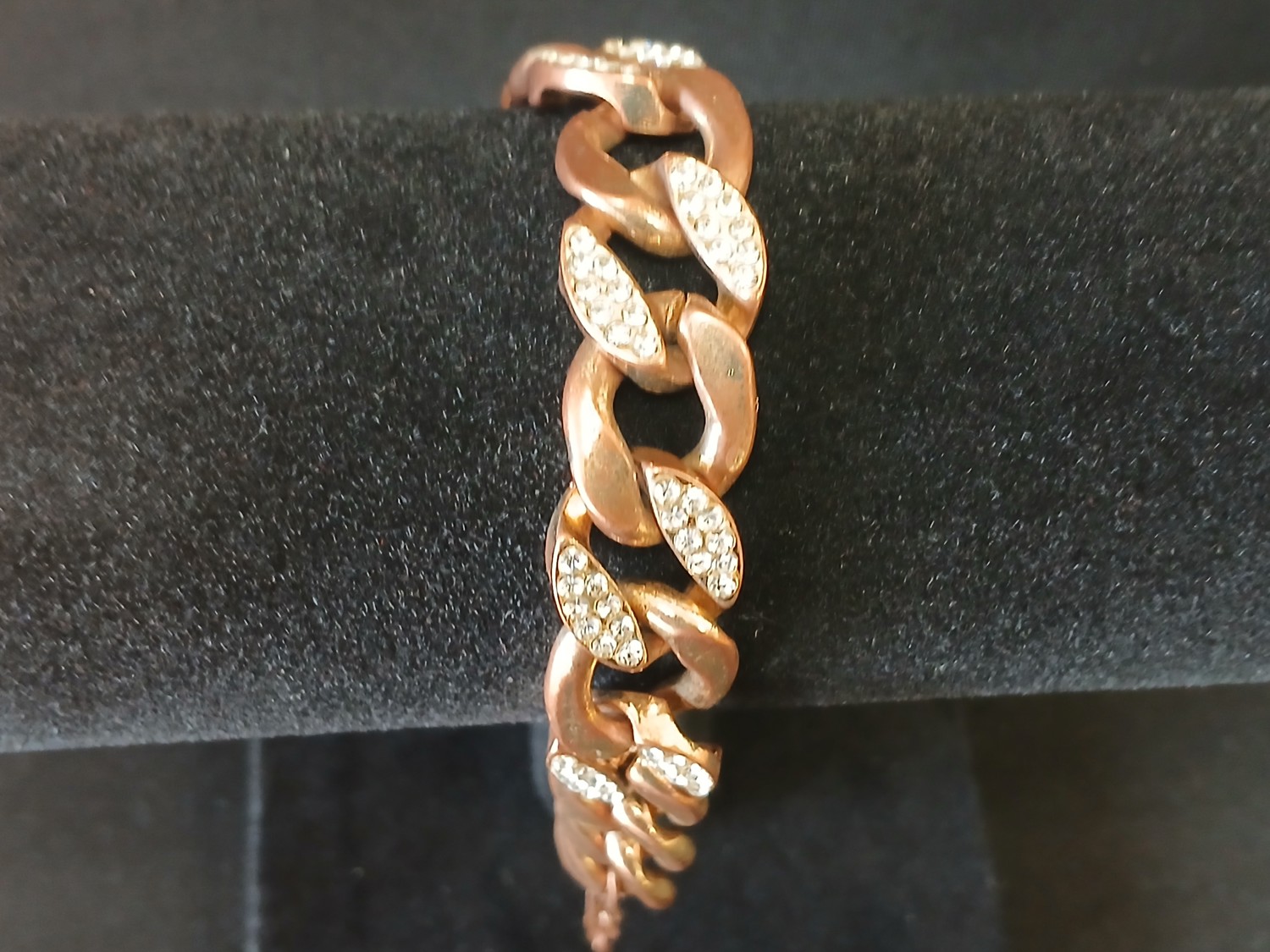 7 inch length, Rhinestone detailing on links. clasp replacement required.